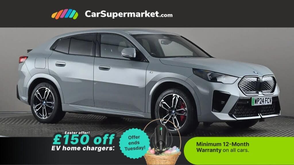 BMW Live Cockpit, Digital Radio;BMW iX2 xDrive30 M Sport 65kWh Auto (Grey) A premium electric SUV offering strong performance with a high-quality interior and advanced technology. Includes BMW Live Cockpit and digital radio. Optional extras include AC Charging Professional, Alcantara-Veganza interior in black with blue stitching, Brooklyn Grey paint, M Sport brakes with red calipers, model designation deletion, sun protection glazing, and Technology Package (£3,485). Minimum 12-month warranty. MOT due 08/05/2027.