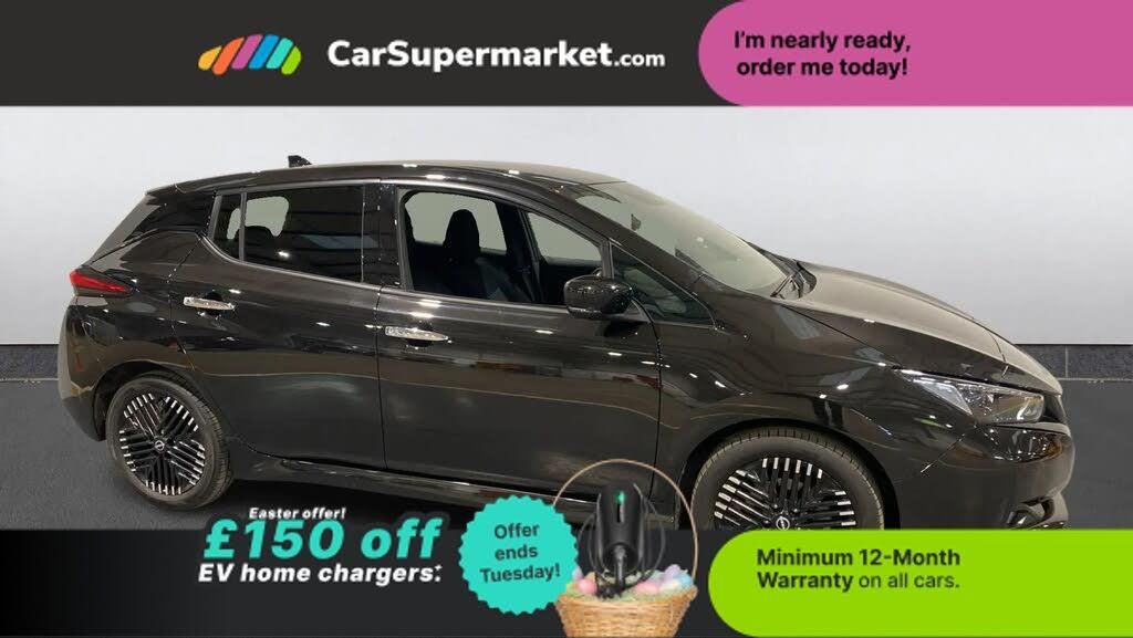360 degree colour camera view,7" full colour TFT screen combimeter,8" colour display with touchscreen,Apple car play/Android Auto,Blind spot intervention,Blind spot warning,E Pedal,eCall emergency call system,Electric power assisted steering,EV telematics system,Front and rear parking sensors,Intelligent around view monitor,Intelligent Cruise control (ICC),Intelligent driver alert system,Intelligent lane intervention,Lane departure warning system,Moving object detection,Navigation system with voice control,Nissan connect services app (air conditioning control, cabin heating and charging),Rear cross traffic alert,Speed limiter,Trip computer,39kWh usable battery capacity,6.6 kw On-board charger,Charging port remote opening,Mac Pherson strut front suspension and twist beam axle rear suspension,Max DC charging power, ChaDeMo type: up to 50kW,Single motor,6 speakers,Audio system with USB,Bluetooth with audio streaming,DAB Digital radio,Rear USB ports,Aero roof spoiler,Auto dimming rear view mirror,Automatic activation of hazard warning lights,Automatic rain sensing wipers,Chrome door handles,Electric front/rear windows,Electrically adjustable and folding door mirrors,Follow me home headlights,Grey rear bumper finisher,High beam assist,Illuminated charge port,Intelligent auto headlights,LED signature daytime running lights with directional indicator,LED signature rear lights,LED third brake light,Rain sensor,Rear privacy glass,Rear side wing doors,Rear wiper,Shark fin antenna,12V socket,3 seat bench in 2nd row,60/40 split folding rear seat,Automatic climate control with pollen filter and timer,Energy saving cabin heating system with heat pump,Front centre console and armrest,Front head restraints,Front seatback pockets,Height adjustable driver seat,Isofix child seat anchor points,Manual adjust driver/passenger seats,Multifunction leather steering wheel,PTC (Positive Temp Co-efficent) heater,Rake and reach adjustable steering column,Rear assist grips,Rear head restraints,Single front passenger seat,Telescopic steering wheel adjustment,Woven fabric upholstery,Heat pack with Heated front seats - Leaf,3 point front seatbelts with pre-tensioners,3x3 point rear seatbelts,ABS with EBD and brake assist,Curtain airbags,Driver and passenger airbags,Electrically driven intelligent braking system,Electronic Stability Programme (ESP),Front and rear vented brake discs,Front seatbelt pretensioners + load limiters,Height adjustable front seatbelts,Hill start assist,Intelligent emergency braking with pedestrian recognition,Intelligent ride control,Intelligent trace control,Manual child proof rear door locks,Mechanical parking brake,Nissan safety shield,Seatbelt reminder for driver and front passenger,Side airbags,Traction control,Tyre pressure monitoring system,VDC Dynamic Vehicle Control,Deadlock,Immobiliser,Intelligent Key with push button starter,Remote central locking,Thatcham Cat.1 alarm,17" Diamond cut black alloy wheels