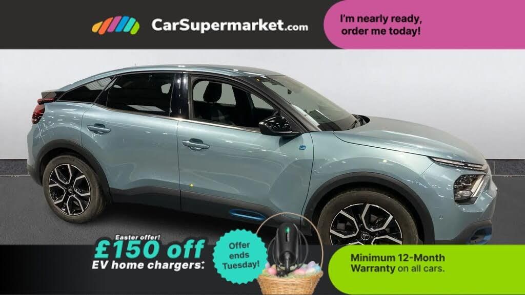 10" high resolution touchscreen user interface, controlling media, connectivity and vehicle settings,5.5 inch backlit full TFT driver's instrument cluster with LED ambient lighting,Active blind spot detection,Apple car play and Android auto,Citroen connect box emergency and assistance system,Citroen connect nav with real time traffic and speedcam,Citroen Smart Pad Support - integrated support for attaching a tablet computer for front passenger,Driver's head-up display,Electronic Power Steering (EPS),Front, rear and lateral parking sensors,In-crash braking,Speed limiter,Tailgate,Top rear vision reversing camera,Voice commands,7.4 kW single-phase onboard charger,Advanced comfort suspension - double hydraulic stops on front suspension and single on rear suspension,Mode 3 charging cable with Type 2 connectors - for accelerated charging from wall boxes and dedicated public charging points,Bluetooth telephone and audio streaming,DAB Digital radio,3rd brake light,Automatic headlights,Body colour bumpers,Body colour door handles,Boot spoiler,Dark tinted rear windows and side windows with chrome detail,Electrically heated, folding and adjustable external rear view mirrors with courtesy lighting,Electrochrome interior rear-view mirror with automatic day-night switching,Front and rear electric windows,Gloss black rear skirt,Intelligent beam headlights,LED daytime running lights in V signature,LED front fog lamps with static cornering function,LED front headlamps,Perla Nera black painted external rear view mirrors,Rain sensing automatic front windscreen wipers,Rear side wing doors,Rear wiper,Roof aerial,Welcome and goodbye lighting,12V power outlet, 1x USB Type-C socket & data connection, 1x USB Type-A socket at 1st row + 1x USB Type-A socket , 1x USB Type-C socket in 2nd row,3 rear headrests,3 seat bench in 2nd row,Boot light,Dashboard tray in front cabin,Deluxe leather steering wheel with two command blocks,Driver and passenger sunvisors with illuminated vanity mirrors,Dual zone automatic air conditioning,Electrically heated front seats,Front and rear LED interior lighting,Front head restraints,Heated steering wheel,Height adjustable front passenger seat,Height and reach adjustable steering wheel,Map pockets in rear of front seats,Raised centre console with armrest and two cup holders,Rear central folding armrest with cupholders and ski hatch,Remote temperature pre-conditioning,Single front passenger seat,Split folding rear seats,High level acoustic insulation pack - C4/C4 X/e-C4 X,Safety plus pack with highway driver assist - C4/C4 X/e-C4 X,3x3 point rear seatbelts,ABS,Driver and front passenger airbags,Electric parking brake,ESP,Front seatbelt pretensioners,Hill start assist,Manual child lock in second row,Manual deactivation of front passenger airbag,Row 1 and 2 curtain airbags,Row 1 side thorax airbags,Seatbelt unfastened on the move warning,Tyre underinflation detection,Anti-theft alarm (volumetric protection),Immobiliser,Keyless entry and start,Remote locking with deadlocks,18" Diamond-cut Crosslight alloy wheels with anti-theft locking wheel nuts,Puncture repair kit with compressor