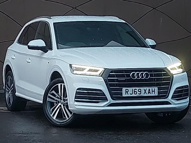 MMI navigation plus with 8.3" colour MMI screen and MMI touch, Audi virtual cockpit - 12.3" high resolution LCD digital instrument cluster display, Audi smartphone interface, Audi phone box with wireless charging, Audi drive select, Audi connect safety and service (e-call), Power tailgate, Voice control system, Quattro on demand, Dynamic suspension, MMI radio plus with 7" colour MMI screen and MMI controller, DAB Digital radio, CD player, Audi sound system, Privacy glass with front acoustic glazing, LED headlights with LED rear lights + dynamic rear indicators, Light and rain sensor for auto activation of lights and windscreen wipers, High beam assistant, Automatic headlight levelling, Auto dimming rear view mirror, Audi Beam uses LEDs to project the Audi Sport logo, ISOFIX child seat mounting and top tether, Heated front seats, Front sport seats with S embossed logo, Deluxe 3 zone electronic climate control, High gloss pack - Q5, Extended LED Interior Lighting Pack - Q5, Extended leather pack - Q5, Tyre pressure warning, Pre sense city, Keyless Go access/ignition system