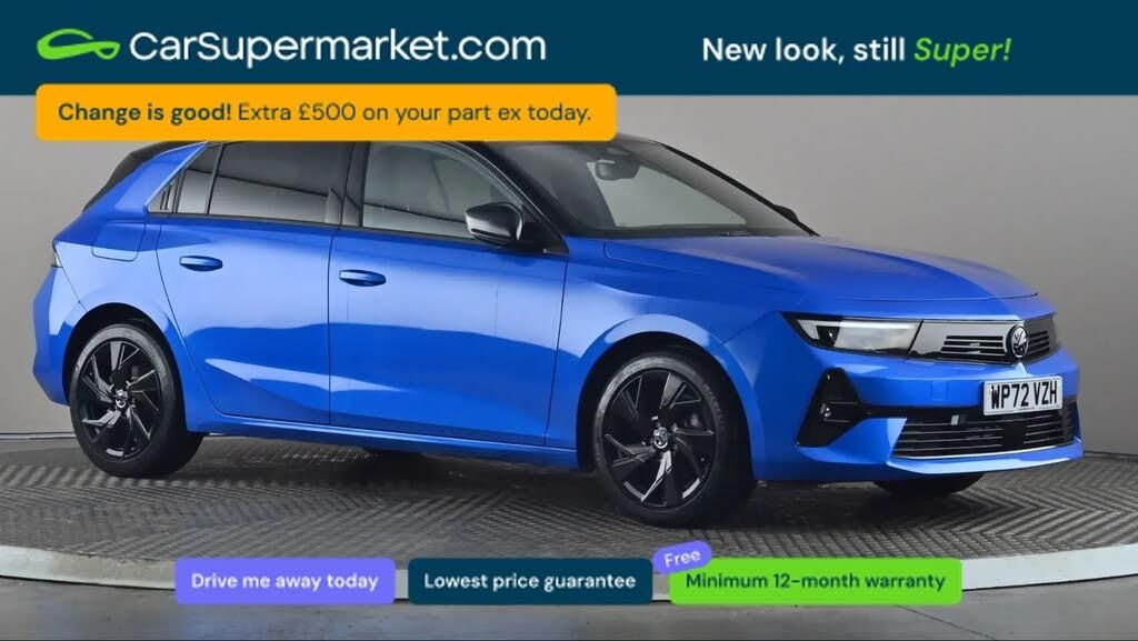 Adaptive Cruise Control, Cruise Control, Bluetooth, Sat Nav, Traffic Sign Recognition, Parking Sensors, Lane Departure Warning, Digital Radio, Apple CarPlay, Android Auto, Heated Front Seats, Heated Steering Wheel, Keyless Entry;Vauxhall Astra 1.2 Turbo 130 GS Line (Blue) A modern hatchback offering a comfortable drive with advanced safety and connectivity features. Includes adaptive cruise control, cruise control, Bluetooth, sat nav, traffic sign recognition, parking sensors, lane departure warning, digital radio, Apple CarPlay, Android Auto, heated front seats, heated steering wheel, and keyless entry. Minimum 12-month warranty. MOT due 29/11/2026.