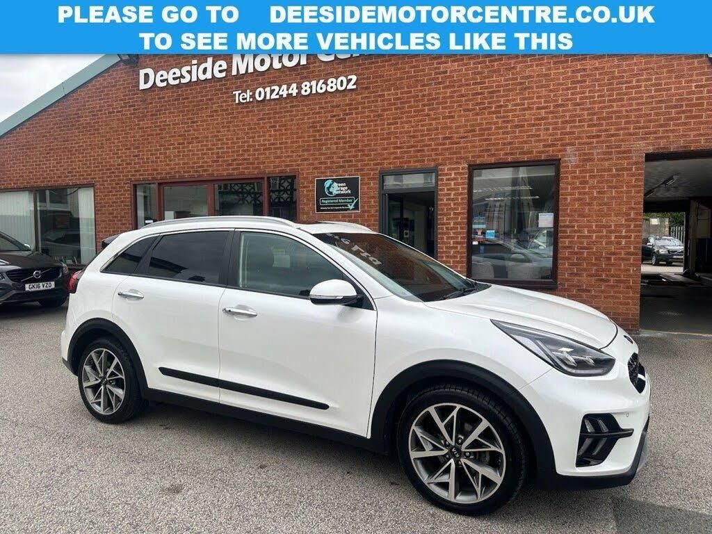 Electric sunroof : Fully stamped service book (please see photos) : 2 Keys : Bluetooth : Satellite Navigation system : DAB Radio : Quality full leather upholstery : Electric Driver's seat : Heated/Cooling front seats : Heated steering wheel : Heated outer rear seats : Isofix fittings : Air-conditioning : Cruise control/Speed limiter : Auto headlights/wipers : Optional paddleshift controls : KIA Lane-Keep assist system : KIA Blind-Spot collision warning system : Rear view camera : Front and rear parking sensors : Cargo/Load cover : Rear privacy glass : Roof-Rails : 18-inch alloy wheels : Stylish Snow white pearl paintwork : Please go to www.deesidemotorcentre.co.uk to see more vehicles like this.................................... Discover this 2021 Kia Niro GDi 4, a 1.6 litre petrol hybrid that offers an impressive fuel economy of 53 miles per gallon. This Euro 6 compliant model is presented in the 4 trim, combining practicality with efficiency for your everyday journeys. The Kia Niro GDi 4 stands out with its low CO2 emissions and placement within a low insurance group, making it a cost effective choice for many drivers. These factors demonstrate how this particular vehicle offers a more economical and accessible ownership experience compared to many other cars in its class. ................................................We are Trading Standards approved, all cars are HPI clear, certain cars may be multiple use owner vehicles - please ask for full details. We carry out a comprehensive PDI inspection + service & MOT if required. We have warranty packages to provide up to 3 years warranty cover + Part Exchange your car + Low Finance APR% rates + Open 6 days a week for viewings & test drives (please contact us to check availability prior to travelling) + Please visit our website to see up to 100 photos and a video of our vehicles.