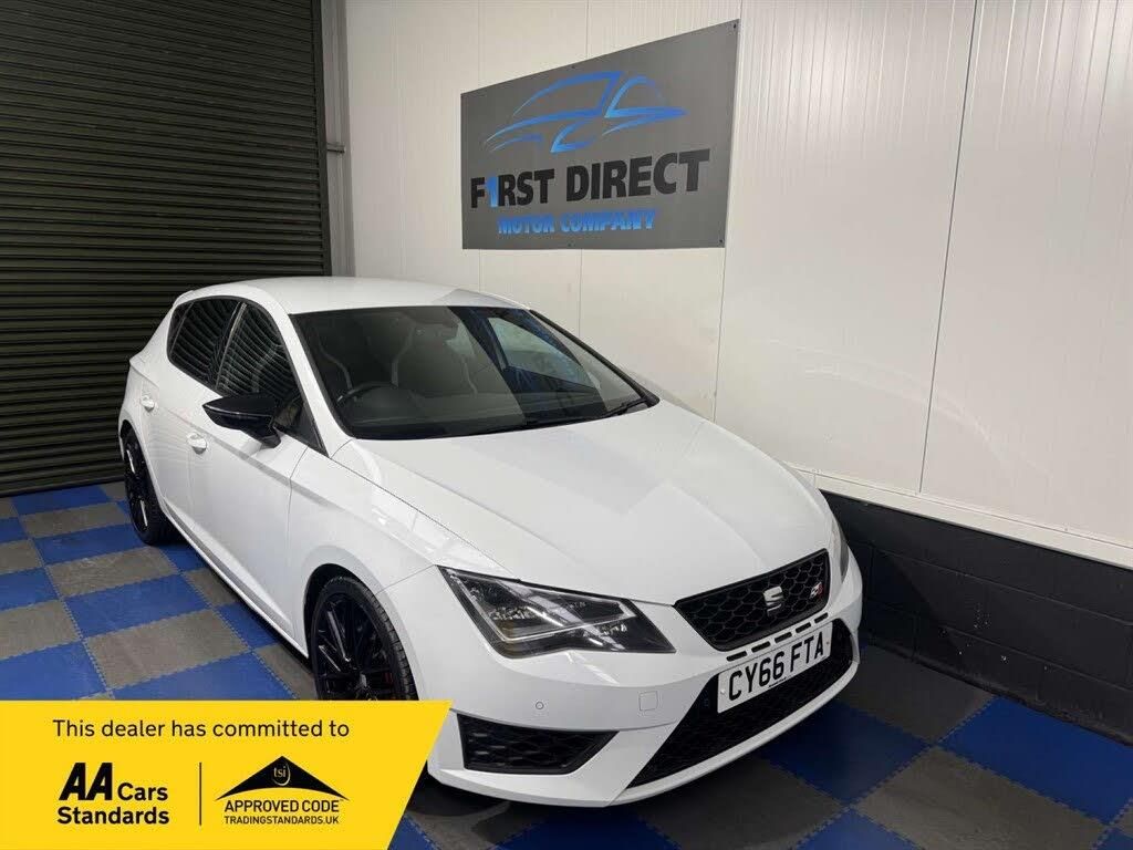 Heated Seats, Car Play,Power folding mirrors, Cruise Control , Black Pack + More All vehicles HPI checked. Various finance options available at competitive rates please call for more information.Part exchange welcomed, Viewing Strictly By Appointment only Please Call Before Attending Our Showroom, Cards accepted , Home delivery available . FCA NUMBER- 1016804 Introducing the Seat Leon 2.0 Leon Cupra Black TSi 5dr - a sleek and powerful hatchback that is sure to turn heads wherever you go. With only 59000 miles on the clock and 3 previous owners, this car has been well-maintained and is ready for its next adventure. Finished in a stunning White colour, this Seat Leon comes with some fantastic extras to enhance your driving experience. Enjoy crystal-clear sound with the SEAT Sound System, and sink into the luxurious CUPRA Bucket Seats, upholstered in Alcantara with Simil Leather Bolsters in Black with White Accents. Don't miss your chance to own this stylish and sporty Seat Leon. Contact us today to arrange a test drive and experience the thrill of driving this exceptional vehicle for yourself.