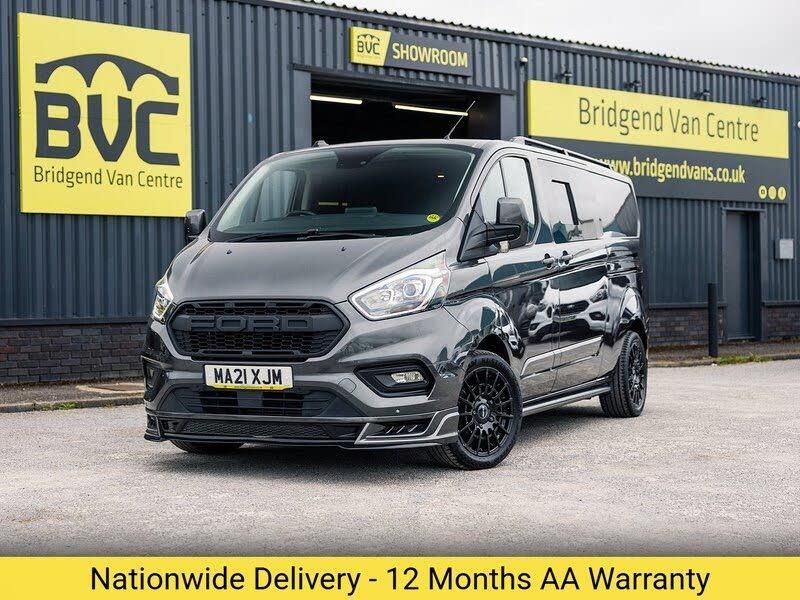 Now available is our 2021 Ford Transit Custom Signature 300 2.0 EcoBlue 130 BHP L2 LWB 5 Seat Doublecab Conversion Automatic Euro 6 Diesel Van.This example features our Signature styling package including front splitter, Ford Trail grille, side bars, roof bars, rear spoiler and 18 inch gloss black alloy wheels.Factory options include single passenger seat, twin side loading doors, rear tailgate and satellite navigation.The rear is fitted with a removable Cymru Camper Furniture Mountain Range setup, converting the load space into a double bed with a pull out kitchen drawer, fridge, chopping board and provision for an induction hob via a built in 3 pin socket. Fully removable in minutes using the original lashing points with no permanent modifications.Fitted with a FOSSiBOT F2400 portable power station providing 230V and 12V power.When previously supplied in 2024, Bridgend Van Care carried out a full service, wet belt (timing belt) replacement and new front brake discs and pads. The previous owner then returned to us in October 2025 for a further service at 76957 miles in October 2025.See our detailed walkaround video for a closer look. No VAT to pay.Why purchase your next vehicle from Bridgend Van Centre? All our vehicles are meticulously prepared to the highest of standards, cosmetically and mechanically. We offer a transparent buying experience with any defects highlighted during our walkaround videos along with the full specification of the vehicle. Competitive funding packages can be arranged with car or van part exchanges welcome and even the option to have your next vehicle delivered to your door. See our verified Trustpilot reviews to see what our customers have to say!