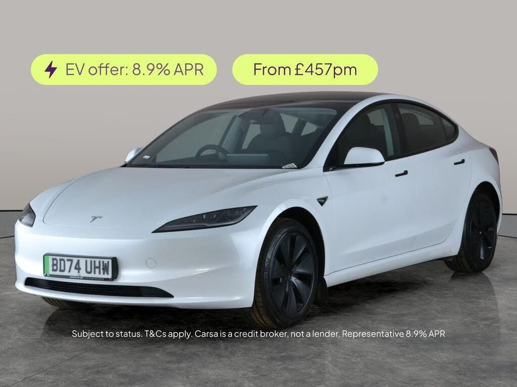 Experience cutting-edge electric driving with this stunning white Tesla Model 3 Saloon. Enjoy panoramic views through the sunroof and panoramic roof, while features like adaptive cruise control, active lane assist, and blind spot assist make every journey effortless. Sink into luxurious heated leather seats, and keep connected with built-in WiFi and satellite navigation. Added conveniences include keyless entry, park assist, a reversing camera, heated steering wheel, and LED headlights for ultimate comfort and safety. MOT to 05/12/2027. Visit our website for service history, online valuation, full vehicle specification plus multiple images. This vehicle is VAT qualifying. Any feature/option specified here is from 3rd party data. We cannot guarantee the accuracy of any specification supplied by a 3rd party. We recommend that you physically check the specification of the vehicle on site prior to purchase. This information does not form part of the buying contract. Terms & Conditions apply. We have over 2,000 cars available from our 10 national branches, check our website to see all our stock. Our Trustpilot rating is 4.4/5 with over 9,000 reviews.
