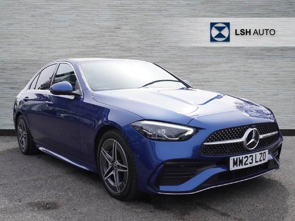 This 2023 Mercedes Benz C Class C200h AMG Line boasts an exceptionally low mileage of just 12501 miles, a testament to its single owner and full service history. As a Mercedes Benz manufacturer approved vehicle, it comes with the reassurance of a 12 month warranty. This Euro 6 compliant model features a 1.5L petrol hybrid engine and the sporty AMG Line trim, offering a blend of efficiency and performance. Notable features include Active Blind Spot Assist for enhanced safety and heated front seats for added comfort.The C200h AMG Line stands out with its impressive 0-62mph acceleration time of just 7.3 seconds, indicating a more dynamic driving experience compared to many other vehicles in its class. This combination of a powerful yet efficient hybrid powertrain, advanced safety systems, and luxurious comfort makes this Mercedes Benz C Class a compelling choice for those seeking a premium driving experience.-AMG LINE SAT NAV HEATED SEATS-Mercedes-Benz C Class C200 AMG Line 4dr 9G-Tronic-LSH Auto UK Ltd - An LSH Group Company. The Worlds Largest Retailer of Mercedes-Benz Passenger Cars