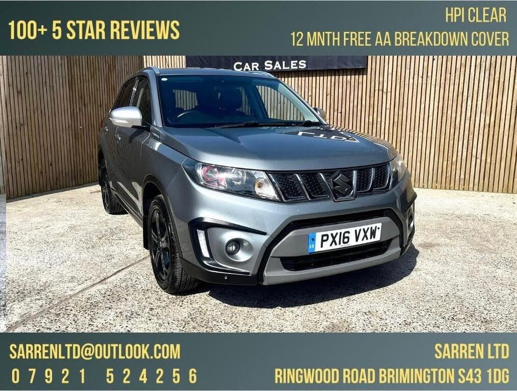 **CONTACT US ON 07921524256 or EMAIL US AT SARRENLTD@OUTLOOK.COM*** ABSOLUTELY BEAUTIFUL Suzuki Vitara 1.4 Boosterjet S ALLGRIP Euro 6 (s/s) 5dr 4WD finished in eye catching metallic grey with excellent black part leather interior. MOT due 13/08/2026 and will come with a fresh MOT. Excellent service history (9) and last serviced at 80069 miles. All New brake discs and pads. Excellent specification including;*Rear Parking Camera*Front and Rear Parking Distance Sensors*Navigation System17in Alloy Wheels*Steering Wheel Mounted Audio Controls*ABS with EBD and Brake Assist Function*DAB Digital Radio*Daytime Running Lights - LED*Bluetooth Integrated into Audio Unit*Automatic Air Conditioning*Hill Hold Control*Keyless Entry and Start*ISOFIX Child Seat Anchorages x 2*Adaptive Cruise Control and many many more!Absolutely gorgeous condition throughout. Extended warranty available. Here at Sarren we do not charge an admin fee for our services.We are a family run dealership, please see our website for more vehicles. To ensure availability of stock we recommend making an appointment to avoid any disappointment. We are highly rated by Autotrader and an approved AA car dealer. All of our vehicles come with 12 months AA BREAKDOWN COVER, part exchange, warranty and delivery available . Fully retail and HPI checked for your peace of mind. We are a family run business, with 20+ years in the motor trade industry and pride ourselves on our award winning aftercare service, warm welcome and pressure free environment. We are based at Sarren Ltd Ring Wood Road, Brimington, Chesterfield S43 1DG in the heart of England between junction 29a and 30 of the M1 in Derbyshire. Viewing welcome. We are open Monday through Saturday and unsociable hours at your convenience.-NAV/R CAMERA/F&R SENSORS/4WD-APPOINTMENTS AT YOUR CONVENIENCE