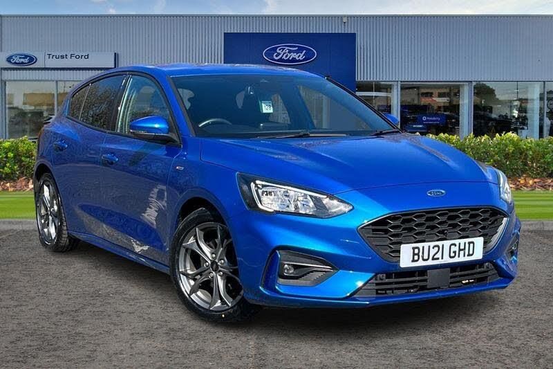 4.2 TFT coloured cluster, Bluetooth system, Digital clock, E-call, Easy fuel capless refuelling system, Eco mode, Ford SYNC 3 navigation with 8 TFT touchscreen, DAB radio and app link Android auto/Apple carplay, Intelligent speed assist, Lane keeping system - lane keeping alert and lane keeping aid, PAS, Selectable drive mode, Trip computer, Auto dimming rear view mirror, Auto headlamps (on/off), Automatic rain sensing wipers, Body colour large rear spoiler, Body coloured bumpers, Body coloured door handles, Body coloured electrically operated and heated door mirrors with side indicators, Electrically operated front and rear windows with one touch opening and closing, Front variable intermittent wipers with electric wash, Heated rear window, LED daytime running lamp, LED front fog lamps with cornering function, LED reflector headlamps, Polished twin tailpipe, Power folding door mirrors, Quickclear heated windscreen, Rear privacy glass, Rear side wing doors, ST-Line upper and lower grille with full body styling kit and wing badges, Tailgate wash/wipe, Third brake light, 3 seat bench in 2nd row, 3 spoke flat bottomed Sensico steering wheel with red stitching, Aluminium gear knob, Cloth upholstery, Dark headliner, Driver's lumbar support, Front floor mats, Height adjustable front headrests, Isofix child seat preparation, Manual air conditioning, Reach + rake adjustable steering column, Rear centre headrest, Single front passenger seat, 3x3 point rear seatbelts, ABS+Electronic Brake force Distribution, Auto hold function, Driver airbag, Electronic parking brake, Electronic stability control, Front and rear seatbelt reminder, Front inertia reel height adjustable seatbelts with pre-tensioners, Front passenger airbag, Front side airbags, Hill start assist, Manual rear child locks, Passenger airbag deactivate switch, Post collision braking, Pre collision assist with autonomous emergency braking and pedestrian/cyclist detection, Side curtain airbags, Three rear inertia reel lap/diagonal seatbelts, Tyre pressure monitoring system