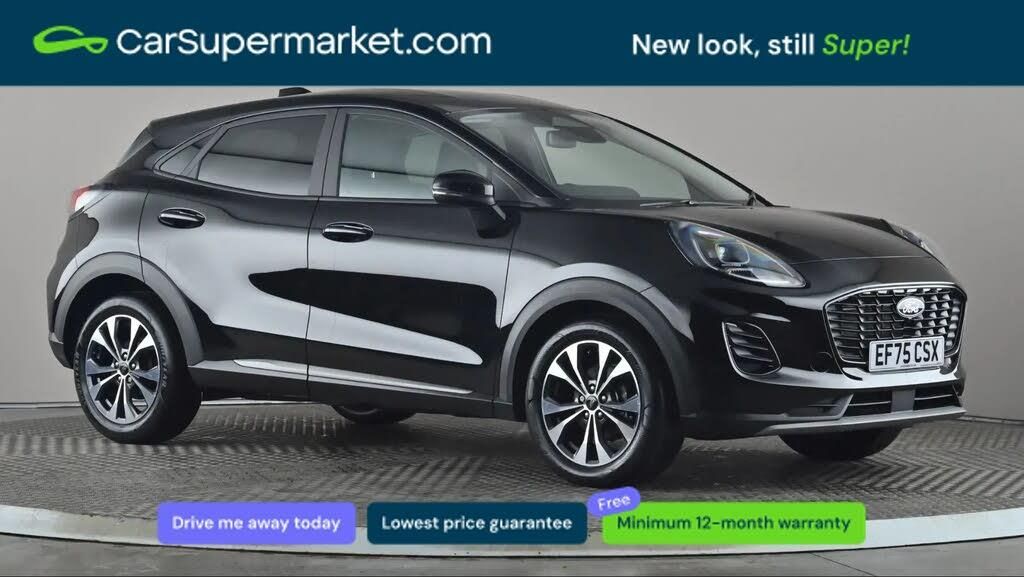 Lane Departure Warning, Traffic Sign Recognition, Android Auto, Apple CarPlay, Sat Nav, Quickclear Heated Windscreen, Privacy Glass;Ford Puma 1.0 EcoBoost Hybrid mHEV Titanium (Black) A compact SUV offering mild hybrid efficiency with modern technology and practicality. Includes lane departure warning, traffic sign recognition, Android Auto, Apple CarPlay, sat nav, Quickclear heated windscreen, and privacy glass. Optional extras include Agate Black paint and cloth upholstery in black with grey stitching (£800). Minimum 12-month warranty. MOT due 04/12/2028.