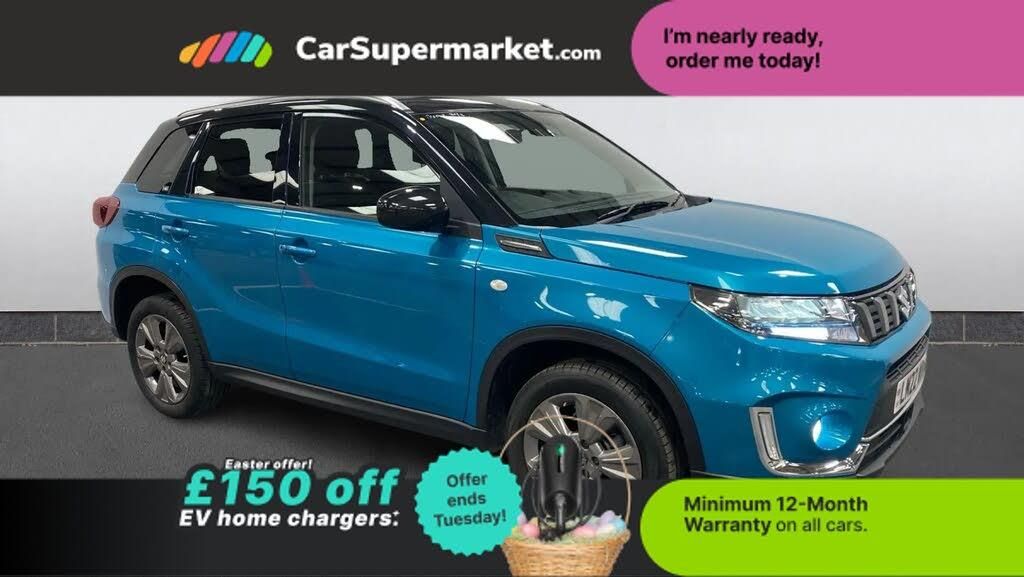 Adaptive Cruise Control, Cruise Control, Blind Spot Monitoring, Bluetooth, Lane Departure Warning, Sat Nav, Rear View Camera, Apple CarPlay, Android Auto, Traffic Sign Recognition, Digital Radio, Privacy Glass, Keyless Entry;Suzuki Vitara 1.4 Boosterjet Hybrid SZ-T Auto (Turquoise) A versatile and efficient hybrid SUV offering strong specification and practicality. Features include adaptive cruise control, blind spot monitoring, rear view camera, sat nav, Apple CarPlay, Android Auto, and keyless entry. Minimum 12-month warranty.