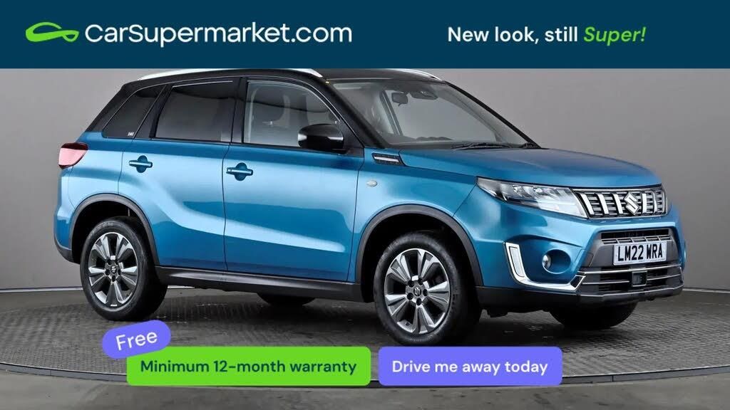 Adaptive Cruise Control, Blind Spot Monitoring, Bluetooth, Lane Departure Warning, Sat Nav, Rear View Camera, Apple CarPlay, Android Auto, Traffic Sign Recognition, Digital Radio, Privacy Glass, Keyless Entry;Suzuki Vitara 1.4 Boosterjet Hybrid SZ-T Auto (Turquoise) A versatile and efficient hybrid SUV offering strong specification and practicality. Features include adaptive cruise control, blind spot monitoring, rear view camera, sat nav, Apple CarPlay, Android Auto, and keyless entry. Minimum 12-month warranty.