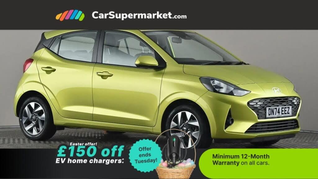 Android Auto, Apple CarPlay, Bluetooth, Cruise Control, Lane Departure Warning, Parking Sensors;Hyundai i10 1.0 Advance [Nav] (Yellow) A compact city car offering practicality with modern connectivity and useful driver assistance features. Includes Android Auto, Apple CarPlay, Bluetooth, cruise control, lane departure warning, and parking sensors. Optional extras include Lucid Lime paint (£650). Minimum 12-month warranty. MOT due 29/09/2027.