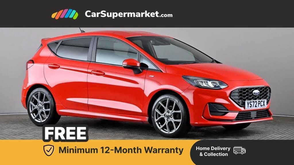 Parking Sensors, Quickclear Heated Windscreen, Privacy Glass;Ford Fiesta 1.0 EcoBoost ST-Line (Red) A sporty hatchback offering engaging driving dynamics and compact practicality. Includes parking sensors, Quickclear heated windscreen, privacy glass, and SYNC 3 with navigation. Optional extras include Race Red paint and cloth interior with red stitching (£400). 159-point inspection completed. Minimum 12-month warranty. MOT due 08/01/2027.