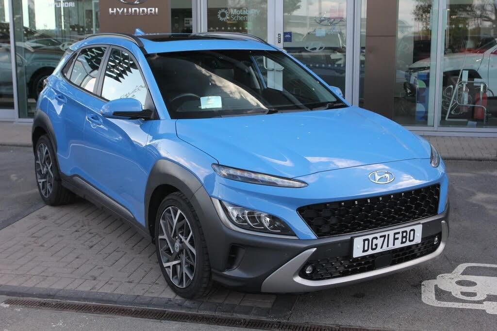 Sat Nav, Touchscreen, Bluetooth, Advanced Safety, Parking Sensor, Headup Display, Apple CarPlay/Android Auto, Cruise Control, Automatic Headlights, Panoramic / Sunroof, AC/Climate, Ambient Lighting, Heated Seats, Heated Steering Wheel, Isofix, Leather Interior, Start/Stop, Keyless Entry, Alloys;Buy a used Hyundai Kona 1.6 GDi Hybrid Ultimate 5dr DCT