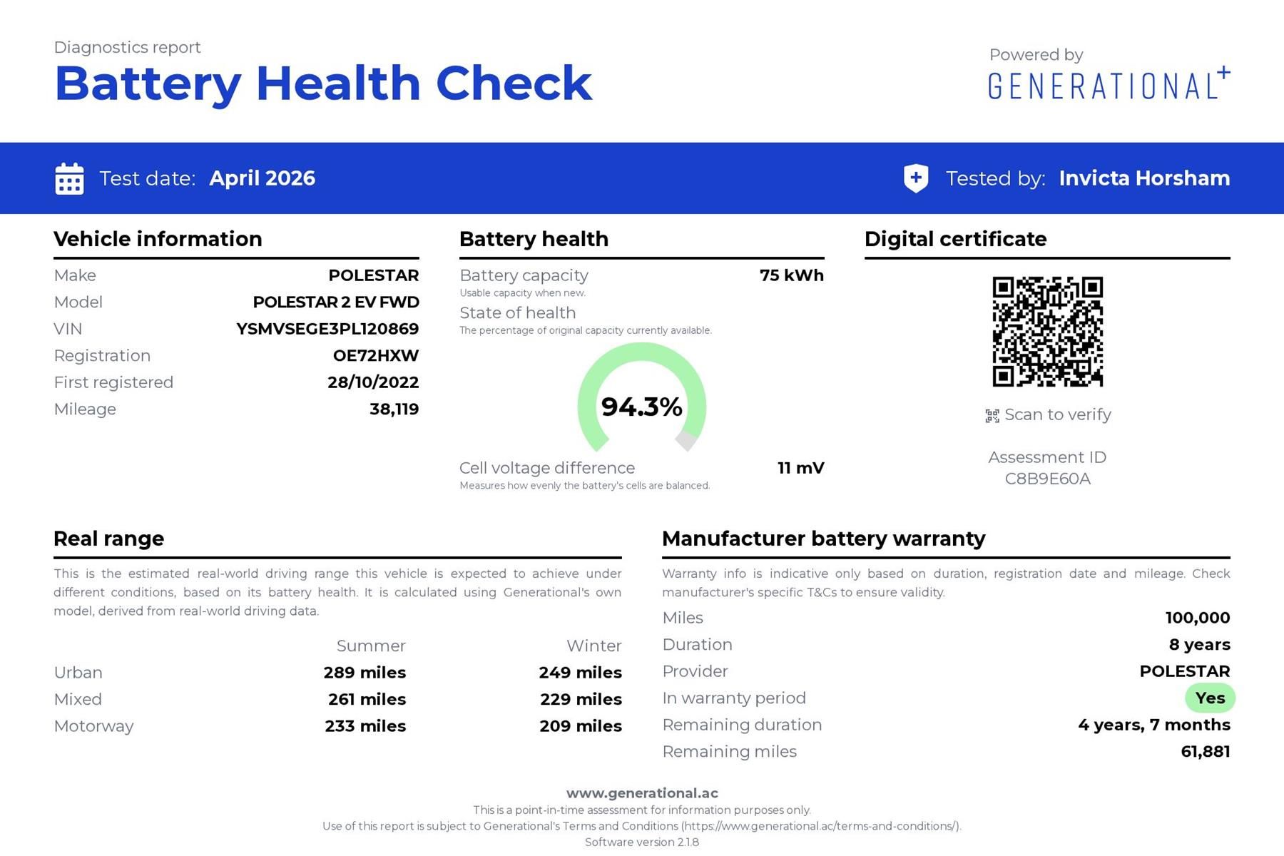 Polestar Polestar 2 170kW 78kWh Long Range Single motor 5dr Auto with 1 Owner and Pilot Lite Pack