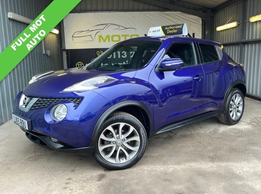 Moto Vation Car Sales are offering this AUTOMATIC Nissan Juke in a great colour with full Black leather interior. Low miles for the age- 61K and with only One previous owner from new, it is clear it has been loved. Would make a great first time car with its low running and insurance costs. Supplied with a full years MOT and full service history attached with 9 stamps- last in our Service Centre in 04/26! Bosting a great specification including a Multi Functional Steering Wheel, AUX, USB, 17" Alloys, Keyless Entry, Auto Headlghts, Bluetooth, Sat Nav, Reverse Camera, Nissan Connect, Cruise Control, Start/ Stop and Isofix. Please confirm with a Sales Executive the amount of keys this vehicle comes with. All of our vehicles come with a 3 months Nationwide warranty and a 12 months basic AA breakdown cover. Please read our reviews! Please note- the above vehicle specification is confirmed and correct. The vehicle specification listed elsewhere may sometimes be inaccurate so please check with the Sales team when enquiring to clarify this prior to purchase. OVER 100 OTHER CARS IN STOCK, PLEASE CHECK OUR WEBSITE www.moto-vation-leeds.co.uk GREAT FINANCE PACKAGES AVAILABLE, DRIVE AWAY INSURANCE AVAILABLE ON CARS 10 YEARS AND YOUNGER, HPI CLEAR! £200 SECURES ANY VEHICLE! NATIONWIDE DELIVERY SERVICE AVAILABLE! WARRANTIES AVAILABLE. APPOINTMENTS AVAILABLE TO TEST DRIVE 7 DAYS A WEEK IF YOU HAVE ANY QUESTIONS ......WE WILL BE HAPPY TO HELP.. MOB.07540256895. ,
