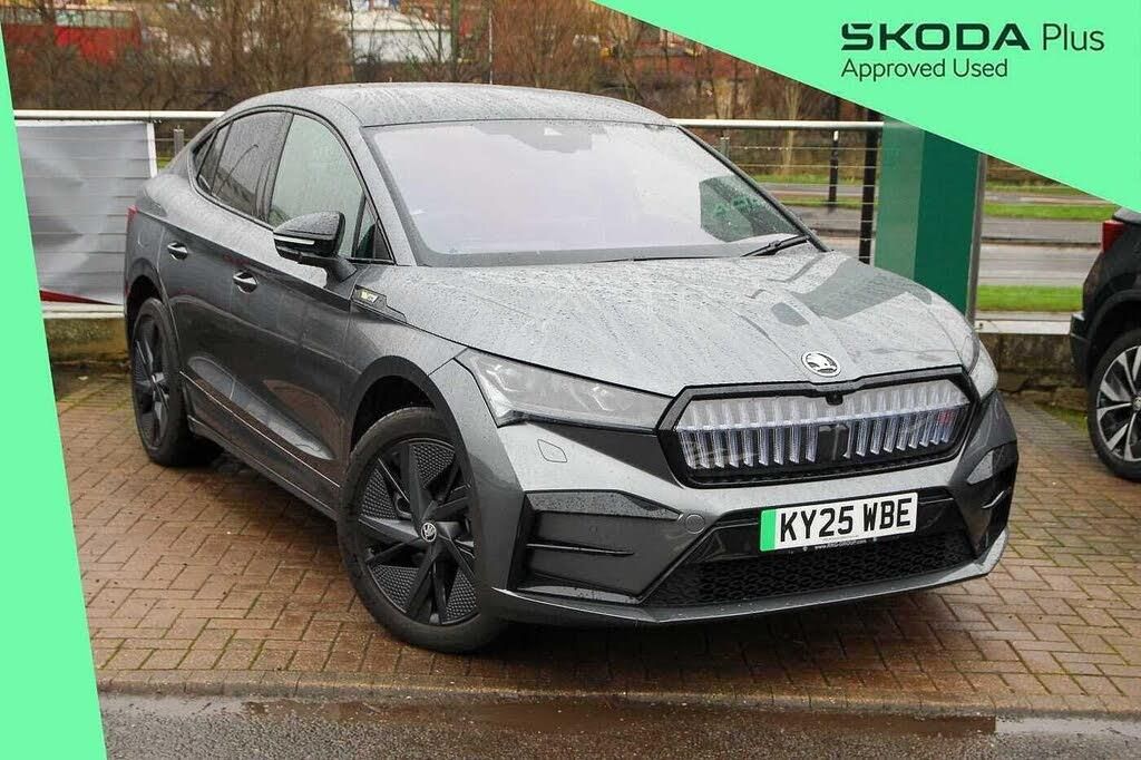 This 2025 Skoda Enyaq vRS is a remarkable example, boasting exceptionally low mileage for its age at just 3037 miles, and is a Skoda manufacturer approved vehicle. As a fully electric model with Four Wheel Drive, it offers a compelling blend of performance and efficiency. The substantial 82 kWh battery provides a maximum range of 341 miles when new, ensuring you can travel further on a single charge. Charging is convenient, taking approximately 12 hours and 13 minutes at home using a 7kW charger, while rapid public charging can replenish the battery from empty to 80% in as little as 28 minutes.The vRS trim level comes equipped with the desirable Maxx Package, which includes advanced Parking Assistance with a 360 Degree Camera, Seats with a Memory function, and a Heated Steering Wheel for added comfort. Further enhancing the driving experience are Full LED Matrix Beam Headlights with Variable Light Distribution and a Rear View Camera, also part of the Parking Assistance suite. Connectivity is seamless with Wireless Smartlink, supporting Android Auto. The Enyaq vRS stands out with its impressive acceleration, achieving 0-60mph in just 5.2 seconds, a highlight that sets it apart from many other vehicles. Additionally, you will benefit from a large boot space, offering practicality for all your needs.-Maxx Pack-vRS Lounge Interior