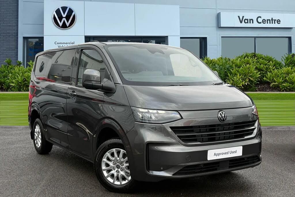 Graphite Dust-Metallic Paint,Rear loading Barn doors,Single sliding side load door,LED main headlights,LED rear lights,Exterior mirrors,power-adjustable,heated and power-folding,Double passenger seat,Single zone air conditioning system with automatic control in cab,Rear loading Barn Doors,16" Montreal alloy wheels,Steel spare wheel with jack and without tyre pressure sensor,Alloy wheel security locking bolts,Remainder of VW '5 Plus Promise,including:,5 Years Warranty,5 Years Road Side Assist,5 Services,3 MOT's,Heat reflecting side window glass,Body colour bumpers,Body coloured door handles,Body coloured radiator grille,Mud flaps front and rear,Rear Transporter nameplate in black grained decorative trim,Vehicle opening configuration 1x 1st row of seats,2x all doors,Electromechanical brake booster,Electronic stability control,ABS,ASR with deactivation button,hill start assist and brake assist system,Adaptive cruise control,Electromechanical speed sensitive power steering,height and longitudinally adjustable steering column,Lane and blind spot assist with exit warning system,Traffic jam assist,Wrong way driver warning,Body coloured door mirrors,Electrically heated,adjustable and folding door mirrors,Driver and front passenger airbag with front passenger airbag deactivation,Dual tone horn,Front and curtain airbags for driver and front passenger,Seat belt pretensioner for driver seat,Apple CarPlay and Android Auto,Wireless mobile phone charging,12" digital drivers display,13" touchscreen infotainment display with wireless app connect and DAB radio,5G Modem,Dynamic road sign display,eCall emergency system,Preparation of VW connect and connect plus,Alternator - 230A,2x 15-W USB data/charging ports in dashboard and 1x USB-C,1x USB-A center bottom,5 additional USB-C charging ports,Black plastic scuff plate for sliding door in cargo without illumination,Gear selector lever on steering wheel,Glasses compartment in driver side roof,Grab handle on A-pillar passenger side,Illuminated lockable glovebox,Narrow centre console with cup holder and compartment for mobile phone,Overhead storage compartment,Rubber floor covering in cab,Striped fabric upholstery,Cabin interior lighting,12V outlet in centre console and 12V outlet on rear right D-pillar,2x LED lights in load compartment,3x additional super bright LED lights in load compartment,Lashing rings for reinforced floor covering,Without passenger seats in load compartment,4 way height and tilt adjustable head restraints,Anti theft alarm system with interior monitoring in cab,backup horn and towing protection,Electronic immobiliser,Lockable wheel bolts,Preparation for alcohol ignition interlock,5+ Promise