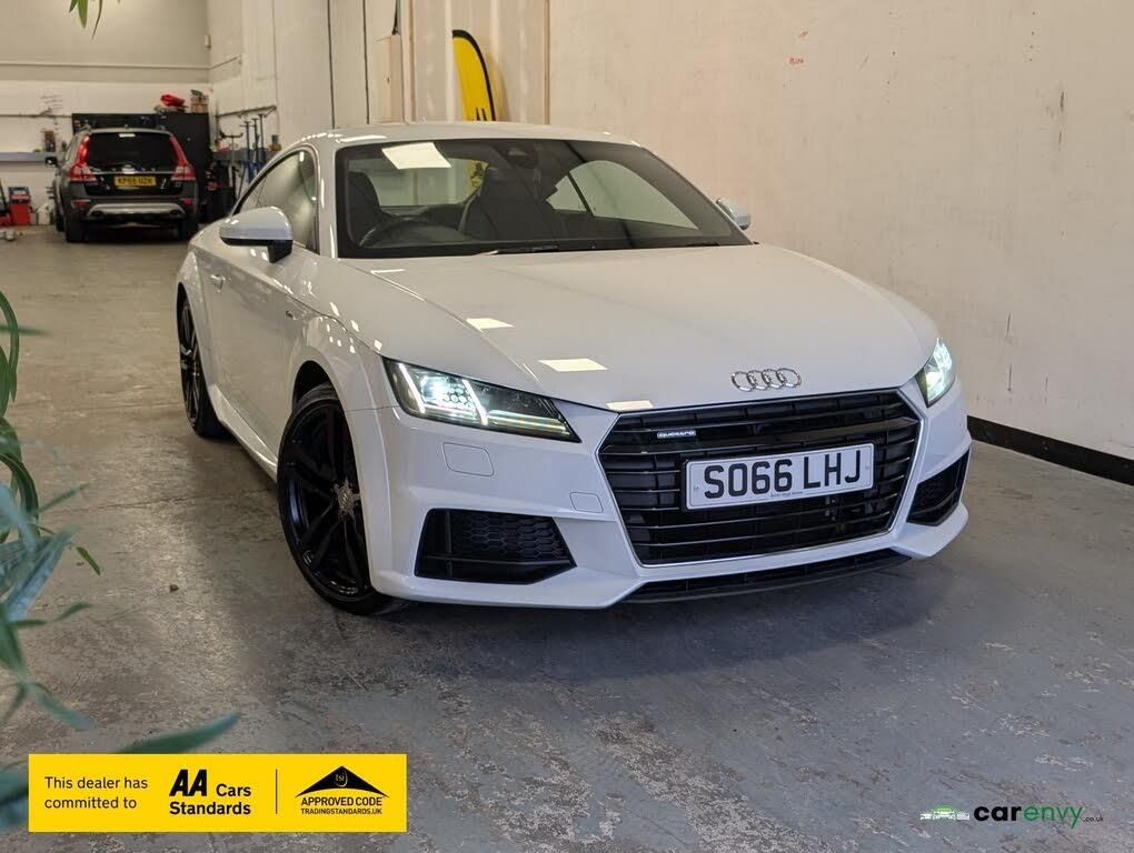 This stunning Audi TT comes with comprehensive service history including a recent service just carried out including gearbox and haldex oil change ready for the new owner. This 2016 Audi TT TFSI S line boasts an MOT valid until August 2026, offering peace of mind for the coming years. This stylish coupe features a powerful 2.0L petrol engine paired with a capable four wheel drive system, ensuring confident handling in various conditions. The S line trim enhances its sporty appeal, while the Euro 6 emission class signifies its modern environmental credentials. Inside, you'll find practical comforts such as manual air conditioning, a front centre armrest, and Bluetooth mobile telephone preparation for seamless connectivity on the go. All weather LED headlights, along with light and rain sensors, provide excellent visibility and convenience. Experience impressive efficiency with this Audi TT, achieving a highlight fuel economy of 43 miles per gallon. This figure, combined with its low CO2 emissions, indicates that this vehicle offers a more economical and environmentally conscious driving experience compared to many others in its class. The combination of its performance, advanced features, and excellent running costs makes this Audi TT TFSI S line a compelling choice for those seeking a premium sports coupe. We aim to have all of our cars prepped and ready to drive away same day. 3 Months engine and gearbox cover included. (Max 3k miles). 12 Months free AA breakdown cover included on cars up to 12 years old. T&C Apply 5 day drive away insurance available. Fees apply. Checked, Prepped and Car Envy Approved. Call today to avoid disappointment.