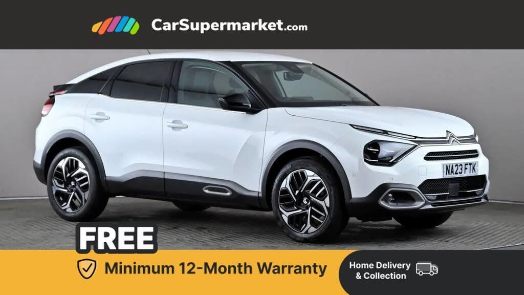 5.5 inch backlit full TFT driver's instrument cluster with LED ambient lighting,Active blind spot detection,Apple car play and Android auto,Citroen connect box emergency and assistance system,Citroen Smart Pad Support - integrated support for attaching a tablet computer for front passenger,Driver's head-up display,Electronic Power Steering (EPS),Front, rear and lateral parking sensors,In-crash braking,My Citroen Drive Plus: 10" high-resolution touchscreen user interface, controlling media, connectivity, vehicle settings + connected nav,Speed limiter,Tailgate,Top rear vision reversing camera,Voice commands,Advanced comfort suspension - double hydraulic stops on front suspension and single on rear suspension,Bluetooth telephone and audio streaming,DAB Digital radio,3rd brake light,Automatic headlights,Body colour bumpers,Body colour door handles,Boot spoiler,Dark tinted rear windows and side windows with chrome detail,Electrically heated, folding and adjustable external rear view mirrors with courtesy lighting,Electrochrome interior rear-view mirror with automatic day-night switching,Front and rear electric windows,Gloss black rear skirt,Intelligent beam headlights,LED daytime running lights in V signature,LED front fog lamps with static cornering function,LED front headlamps,Perla Nera black painted external rear view mirrors,Rain sensing automatic front windscreen wipers,Rear side wing doors,Rear wiper,Shark fin roof aerial,Welcome and goodbye lighting,12V power outlet, 1x USB Type-C socket & data connection, 1x USB Type-A socket at 1st row + 1x USB Type-A socket , 1x USB Type-C socket in 2nd row,3 rear headrests,3 seat bench in 2nd row,Boot light,Dashboard tray in front cabin,Deluxe leather steering wheel with two command blocks,Driver and passenger sunvisors with illuminated vanity mirrors,Dual zone automatic air conditioning,Electrically heated front seats,Front and rear LED interior lighting,Front head restraints,Height adjustable front passenger seat,Height and reach adjustable steering wheel,Map pockets in rear of front seats,Raised centre console with armrest and two cup holders,Rear central folding armrest with cupholders and ski hatch,Single front passenger seat,Split folding rear seats,Two position boot floor,High level acoustic insulation pack - C4/C4 X/e-C4 X,Safety plus pack with highway driver assist - C4/C4 X/e-C4 X,3x3 point rear seatbelts,ABS,Driver and front passenger airbags,Electric parking brake,ESP,Front seatbelt pretensioners,Hill start assist,Manual child lock in second row,Manual deactivation of front passenger airbag,Row 1 and 2 curtain airbags,Row 1 side thorax airbags,Seatbelt unfastened on the move warning,Tyre underinflation detection,Anti-theft alarm (volumetric protection),Immobiliser,Keyless entry and start,Remote locking with deadlocks,18" Bi-tone diamond-cut aeroblade alloy wheels with anti-theft locking wheel nuts,Puncture repair kit with compressor