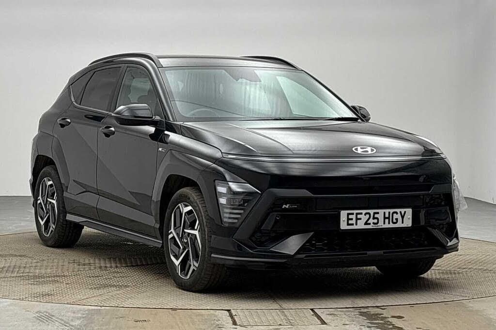 Pearl - Abyss black, N Line Alcantara/leather - Black with red accent, Automatic windscreen wipers with rain sensor, Electric front windows with anti-trap mechanism and one touch control, Electric rear windows, Privacy glass - Rear windows and tailgate, Rain sensor, Rear wiper, Solar glass with front door glass and windscreen, Tinted glass in front and rear doors, Windscreen auto defog function, Body colour exterior door handles, Body coloured wheel arch inserts, Rear roof spoiler with integrated LED brake light, Rear side wing doors, Roof rails, Automatic headlights with dusk sensor, Horizon centre LED DRL, LED projector headlights, LED taillights, LED upper and lower rear lights, Anti-lock brake system (ABS), Downhill brake control, Electric parking brake, Electronic stability control, Hill start assist control (HAC), Blind spot collision avoidance assist, Blind spot view monitor, Driver status monitor (DSM), Feature on demand - Enabled, Forward collision avoidance assist (FCA 1.5) - Car, pededstrian, cycle and junction turning, Front parking sensor, HDA - Highway Drive Assist Level 1.5, Intelligent speed limit assist, Lane follow assist, Lane keep assist, Leading vehicle departure alert (LVDA), Parking Collision Avoidance Assist-Reverse (PCA-R), Parking distance warning - side, Parking system with rear camera and guidance system, PAS, Rear cross traffic collision avoidance (RCCA), Rear parking sensor, Rear view camera with dynamic guidelines, Safe exit warning (SEW), Smart cruise control with stop and go functionality, Surround view monitor, Auto dimming rear view mirror, Door mirror LED indicator lights, Electrically adjustable and heated door mirrors, Gloss black door mirrors, Power folding door mirrors, Airbag - front, front side, curtain and centre front airbag, Childproof rear door locks, Fixed 3 point for second row centre passenger seatbelt, Rear seat alert, Tyre pressure monitoring system, Floor mats, 2 zone climate control, 12V power outlet in front console, Aluminium pedals, Driver and passenger front seat pockets, Heated steering wheel, Height/reach adjustable steering column, Leather steering wheel, Luggage net, Luggage shelf, Metal paint effect interior door handles, N Line Alcantara/leather upholstery, Rear centre armrest with cupholders, Shift by wire SBW, Ambient lighting, LED centre interior light, LED front interior light, Luggage compartment LED lighting, Driver/passenger sunvisors and illuminated vanity mirrors, Bluetooth connectivity with voice recognition, eCall emergency call system, Roadside assistance, Wireless phone charging pad, Wireless Smartphone Integration includes Apple CarPlay and Android auto, 2 front USB C and 2 rear USB C charging points, Bose Premium Audio system with 7 premium speakers + subwoofer, DAB Digital radio, Steering wheel audio, phone and cruise controls, Height adjustable power tailgate, 12.25'' digital instrument cluster, 12.3'' touchscreen centre console display satellite navigation with bluelink, live services and mapcare, Driver supervision instrument cluster with 12.3'' LCD display, N Line exterior design pack - Kona, N Line interior design package - Kona N Line S, Trailer wiring package - Kona, 3 seat bench in 2nd row, 40/20/40 split folding rear seat, Adjustable head restraints, Driver's seat electric adjustments, Driver's seat lumbar support, Front passenger's seat electric adjustments, Heated front seats, Heated rear seats, Single front passenger seat, Ventilated front seats, Vertical adjustment rear head restraints, Alarm/immobiliser, Rear occupant alert, Remote central locking, Smart key with keyless entry and start/stop button, Five year annual vehicle health checks, Temporary mobility kit (TMK), N Line Alcantara and Leather - Black with Red Detail
