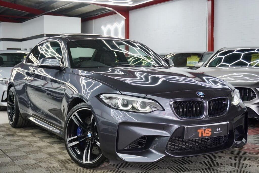 12V Power Socket - Centre Console, 12V Power Socket - Passenger Footwell, 19in Alloy Wheels - M Double Spoke Style - 437M with Mixed Tyres - Jet Black Forged and Burnished, Active M Differential, Air Conditioning - Automatic with Two-Zone Control, Airbags, Airblades - Ferric Grey, Alarm System - Thatcham 1 with Remote Control and Engine Immobiliser, Ambient Lighting - Switchable, Armrest - Front with Sliding Adjustment, Automatically Dimming Rear View Mirror, BMW ConnectedDrive Online Services, BMW ConnectedDrive Services, BMW Emergency Call, BMW Mobility System, Apple CarPlay Preparation, BMW Professional Radio with Single CD Player - with MP3 Playback Compatibility, BMW Icon Adaptive LED Headlights, BMW TeleServices, Battery Age Recognition Function, Battery Safety Cut Off, Comfort Access System, Dakota Leather - Black with Blue Contrast Stitching, Bluetooth Hands-Free Facility with USB Audio Interface and Audio Streaming, Driving Assistant, Brake Pad Wear Indicator, Bumper System - Front and Rear, Central Locking Switch - Doors - Fuel Filler Cap - Luggage Compartment, Enhanced Bluetooth Telephone Preparation with Wireless Charging, Check Control Warning System for Monitoring of Lights and Door-Luggage Compartment Open Warning, Exterior Mirrors - Electrically Folding with Anti Dazzle, Child Seat ISOFIX Attachment for the Two Outer Rear Seats, Glass Sunroof, Coat Hooks - Integrated into Rear of B Pillar, Headlight Wash, Condition Based Service, Crash Sensor, High-Beam Assistant, Loudspeaker System - Harman Kardon, Cruise Control with Brake Function, Cup Holders x2 with Sliding Cover and Inlay Mat, Lumbar Support - Driver and Front Passenger, DAB Digital Radio, DSC - Dynamic Stability Control Plus, M Seat Belts, Mineral Grey, Daytime Driving Lights, Direction Indicator - Side Repeaters - Integrated in Exterior Mirrors, Reversing Assist Camera, Direction Indicator Lights - Clear Lenses, Door Sill Finishers - M2 Designation, Seat Adjustment - Front Electric with Driver Memory, Seat Heating for Driver and Front Passenger, Drive Performance Control - ECO PRO - Comfort - Sport - Sport Plus, Speed Limit Info, Dynamic Brake Lights, ECO PRO Mode, EPS - Electric Power Steering, Steering Wheel - Heated, Sun Protection Glazing, Electric Windows - Front and Rear with Open-Close Fingertip Control - Anti-Trap Facility and Comfort Closing Function, Engine Cover with BMW Roundel and TwinPower Turbo Designation, Exhaust Tailpipe - Twin Dual - Chrome, Extended Lighting, Extended Storage, Exterior Mirrors Electrically Adjustable, Exterior Parts in Body Colour, Exterior Trim - High-Gloss Shadowline, First Aid Kit and Warning Triangle, Floor Mats - Velour, Full Black Panel Display, Gearshift Lever with M Designation - Short-Shift, Glove Box, Handbrake Lever and Gear Lever in Leather, Headlining - Anthracite, Heat Protection Glazing with Green Tint, High Level Third Brake Light, Instrument Cluster, Lashing Eyes in Luggage Compartment at Sill x2, Interior Comfort Package, Lights-On Warning by Audio Warning Signal When Ignition is Switched Off, Interior Lighting - Front Centre Over Interior Mirror and Rear Centre, Interior Trim - Carbon Fibre with Black High Gloss Finishers, Locking Wheel Bolts, Kidney Grille - Chrome with Double Black Vertical Slats - M2 Badging, LED Headlights, LED Rear Light Bars, Luggage Compartment - Light, Luggage Compartment Access via BMW Roundel, M DCT Gearbox, M Dynamic Mode, M Rear Spoiler, M Side Strakes, M Specific Braking System, M Specific Sport Suspension - Unique to M2, M2 Specific Aerodynamic Bodystyling with Unique Front Bumper-Rear Bumper and Side Skirts, Media Package - BMW Professional, Model Designation, Multifunction Controls for Steering Wheel, OBC - On-Board Computer, Oil Sensor For Level and Grade - Warning by Check Control System, Oil Temperature Display via On-Board Computer Shown in Central Screen in Instrument Cluster, Optimum Shift Indicator, PDC - Park Distance Control - Rear, Personal Profile - Extended, Rain Sensor with Automatic Headlight Activation, Real Time Traffic Information, Rear Fog Light, Rear Seat Headrests - Outer Headrests Folding, Rear Window Aerial, Remote Control with Integrated Key with Insert in Blue, Remote Services, Reversing Light in Rear Light Clusters, Seat Belt Security Check for Driver and Front Passenger, Seats - 60-40 Split Folding Rear, Shark Fin Aerial, Side Armrests - Front and Rear Integrated into Door Trim, Side Impact Protection, Sport Instrument Cluster - Differentiated Dial Design Featuring Finer Chrono-Scaling, Sport Seats - Front, Start-Stop Button with Comfort Go Keyless Engine Start and Auto Start-Stop Deactivation Button, Steering Wheel - M Leather Multi-Function Finished in Nappa Leather, Steering-Wheel Column Adjustment - Manual, Storage Compartment - Rear Centre Console and in Door Trim - Front, Sun Visors with Vanity Mirrors and Ticket Holder, TPMS - Tyre Pressure Monitoring System, Three-Point Seat Belts - All Seats, Twin Horns, Visible VIN, Welcome Lighting - LED