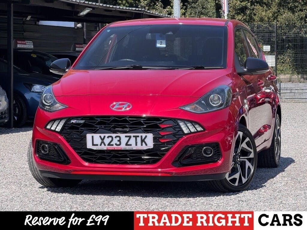 JUST ARRIVED & READY TO DRIVE AWAY! 2023/23 Hyundai i10 1.0 T-GDi N Line finished in Dragon Red Pearlescent (£550 Option). We are pleased to offer this lovely 5 door petrol hatchback. This is the highly desirable and economical 1.0 litre model with a 5 speed manual transmission that offers 99 BHP and over 50 MPG. Insurance group 10/50. It has covered just 11,735 miles with full service history (3 services, 2 @ Hyundai) and drives as you would expect. Just serviced upon arrival. MOT until 20th April 2027 with no advisories. The car is ready to drive away. We will also include a complimentary 12 month AA breakdown cover. One owner from new. Euro 6 status - ULEZ compliant. A superb low mileage example with the sought-after N Line specification. Highlights include; 16" two-tone diamond cut alloy wheels, gloss black exterior trims, twin exhaust, LED DRL's, privacy glass, A/C, bluetooth connectivity with BT audio and voice recognition, cruise control with speed limiter, DAB, USB, wireless Apple CarPlay & Android Auto, hill start assist, usual N Line interior/exterior styling, rear camera, remote central locking x 1, LED rear combination lights and two-tone cloth upholstery with contrast red stitching. The full specification list can be found on our website. Advertised below the AutoTrader RRP. Please let us know if you would like any further information or a detailed video sent via WhatsApp. Take advantage of our RESERVATION POLICY! Visit our website and RESERVE A VEHICLE for £99. This offers complete peace of mind that the vehicle you have chosen will be available when you visit our dealership. This allows you 3 days to make arrangements and visit us. This is of course fully refundable on-site, in person should you choose not to proceed upon viewing. We offer finance from 9.9% APR with flexible deposit options. Please visit our finance section displayed on each vehicle for a full breakdown of HP & PCP quotes. Apply online in a few quick and easy steps and have a decision within an hour. We offer competitive part exchange prices. All of our cars are priced below the market RRP and prepped with the highest attention to detail. We have over 500 online reviews. Visit our website for further details. - - Please be sure to double check the features listed on third-party advertising platforms. Data is automatically populated from the registration number - -