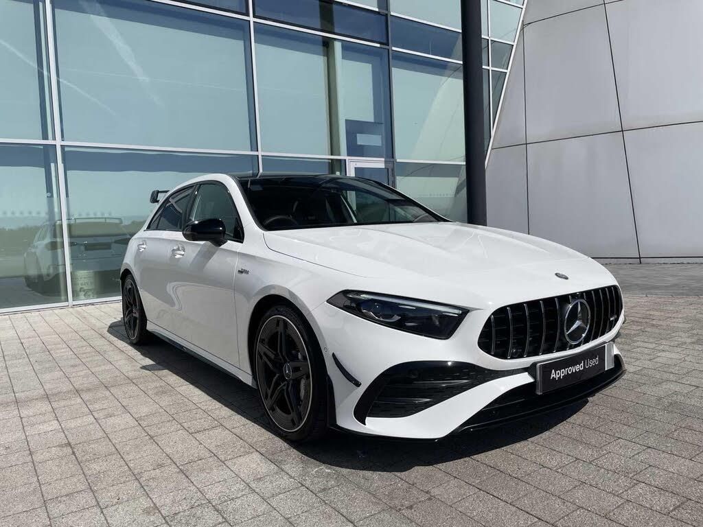 This 2024 Mercedes-Benz A35h AMG (Premium Plus) is a manufacturer approved vehicle with an exceptionally low mileage of just 1406 miles, having had only one owner. It boasts a full dealership service history, with its last service completed on 09/07/2025 at 865 miles, and its MOT is valid until August 2027. This Euro 6 compliant model features a powerful 2.0L Petrol Hybrid engine paired with Four Wheel Drive, offering a dynamic driving experience. Notable features include dual Bluetooth interfaces, automatic headlamp activation, a head up display, and a 360 degree parking assistance camera system, alongside seamless smartphone integration with Android Auto and Apple CarPlay.The Mercedes-Benz A35h AMG is designed for performance and practicality, accelerating from 0-62mph in a remarkable 4.7 seconds, showcasing its superior capability compared to other vehicles in its class. Its large boot space further enhances its versatility, making it an ideal choice for those who need both speed and utility. This premium hatchback combines advanced technology with the renowned quality and engineering of Mercedes-Benz.All of our Approved used cars benefit from a comprehensive multi-point check and detailed rectification by qualified Mercedes-Benz Technicians. All Approved Used cars have their provenance checked and are supplied with a minimum of 12 x months warranty and roadside assistance (24 x months for AMG models) plus many other benefits.Hedin Mercedes-Benz Brooklands is based within the UK brand centre Mercedes-Benz World where customers can experience all aspects of the Mercedes-Benz brand, you can see more about our incredible location in our seller profile area.Even if we do not supply your next car, we may still be the best buyers of your current one, just give us a call with the details to receive your valuation.We aim to provide an enjoyable and relaxed experience for all our customers, so why not make a day of it and visit the home of Mercedes-Benz in the UK.-1 OWNER AERO PACK LEATHER-Mercedes-Benz World - The home of Mercedes-Benz in the UK