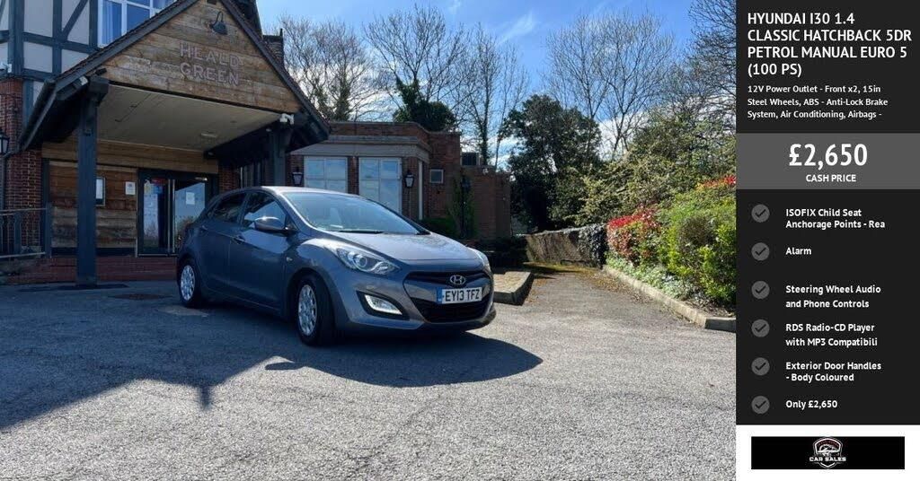 This 2013 Hyundai i30 Classic is offered with a 12 month MOT provided on purchase, ensuring peace of mind for its next owner. This reliable hatchback is equipped with a 1.4L petrol engine and comes with a 3 month warranty for added security. While it has partial service history, this i30 Classic benefits from essential features such as air conditioning to keep you comfortable in all weather, and Bluetooth connectivity with voice recognition, allowing for handsfree calls and music streaming. The Hyundai i30 Classic stands out with its low insurance group, making it an economical choice for many drivers compared to similar vehicles. This particular model offers a practical and straightforward driving experience, ideal for everyday use. Its inclusion of key comfort and convenience features, combined with its accessible insurance rating, presents a compelling package for those seeking a dependable and cost effective car. DELIVERY AVE FINANCE AVE AND MUCH MORE LIKE 12V Power Outlet - Front x2, 15in Steel Wheels, ABS - Anti-Lock Brake System, Air Conditioning, Airbags - Driver, Airbags - Front Passenger, Airbags - Front Side, Airbags - Full Length Curtain, Alarm, BAS - Brake Assist System, Bluetooth Connectivity with Voice Recognition, Childproof Rear Door Locks, Cup Holders - Front x2, Daytime Running Lights - LED, Deadlocks, Door Mirrors - Body Coloured, EBD - Electronic Brake Force Distribution, ESP - Electronic Stability Programme, ESS - Emergency Stop Signal, Electric Adjustment and Heated Door Mirrors, Exterior Door Handles - Body Coloured, Front Door Pockets, Front Fog Lights, Front Map Reading Lights, Front Passenger Airbag De-Activation Switch, Glove Compartment with Cooling Function and Illumination, HAC - Hill-Start Assist Control, Head Restraints - Front and Rear with Vertical Adjustment, Headlights - Follow Me Home Function, ISOFIX Child Seat Anchorage Points - Rear - Outer Rear, Instrument