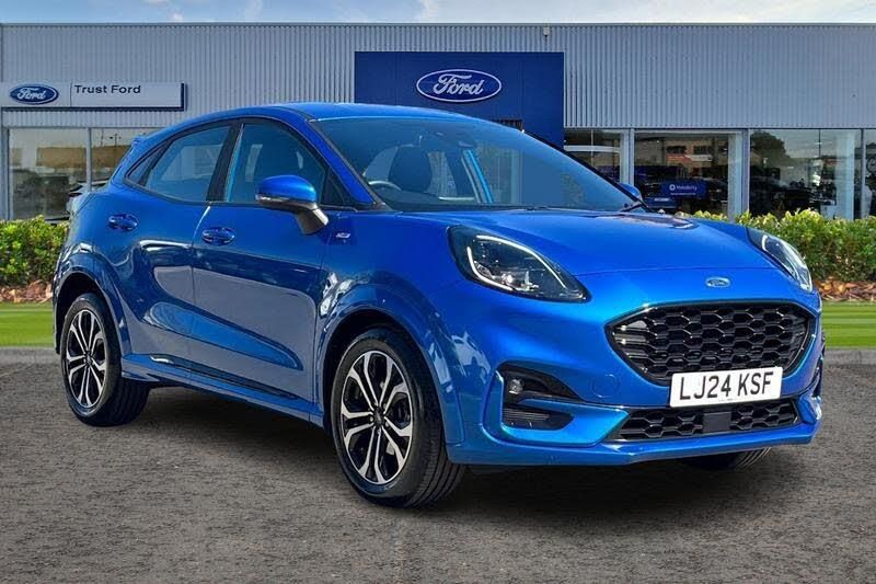 Driver impairment monitor, Emergency call service, Ford easy fuel, Full digital 12.3 instrument cluster, Lane keeping aid with lane departure warning, Power assist steering, Power start button, Rear parking sensor, Selectable drive modes(Normal, Eco, Sport, Slippery and Trail), Speed sign recognition, Automatic headlights with auto high beam, Automatic rain sensing wipers, LED rear lamps, Power foldable heated door mirrors with puddle lamps, Projector headlamps with LED day time running lights and front fog lamps, Quickclear heated windscreen, Rear side wing doors, Rear wiper, ST-Line body styling kit with unique grille, Third brake light, 3 seat bench in 2nd row, Centre console with armrest and stowage, Ford megabox extended bootspace, Front and rear head restraints, Front floor mats, Manual 2 way passenger seat adjustment, Manual 4 way driver seat adjust with lumbar adjustment, Single front passenger seat, ST- Line cloth trim with red stitching, ST-Line flat bottomed sensico leather steering wheel with leather handbrake and aluminium gear knob, 3 rear seatbelts, Child safety lock, Electronic stability control (ESC) and hill start assist, Pedestrian/cyclist detection & post-collision braking, Pre collision assist system, Tyre pressure monitoring system (TPMS)