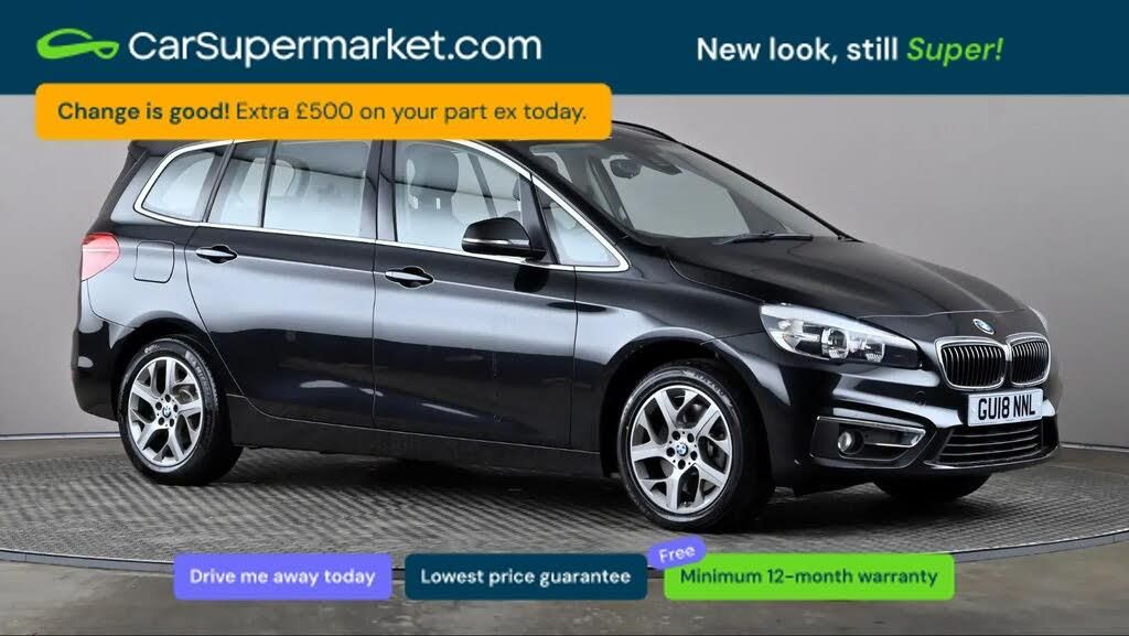 Attentiveness assist,Automatic tailgate operation,BMW Online services,BMW Teleservices,Check control system,Door/boot open warning light,Forward collision warning,Lights on warning,Oil temperature gauge,On board computer,Outside temperature display,Personal Profile,Service interval indicator,Speed limiter,Stop/start button,Diesel particulate filter,Drive Performance Control,Electronic differential lock,Sports function on gearbox with steering wheel mounted gearshift paddles,Bluetooth audio streaming,BMW professional radio/CD/MP3,DAB Digital radio,Body colour bumpers,Body colour door handles,Body colour door mirrors,Body colour roof mouldings,Chrome kidney grille with chrome vertical slats,Door mirror integrated indicators,Electric adjustable heated door mirrors,Electric front/rear windows with one touch/auto up/down,Exclusive door sill finishers,Follow me home headlights,Front fog lights,Green tinted heat insulating glass,Heated windscreen washer jets,High beam assistant,LED daytime running lights,Model designation deletion on side,Rain sensor including auto headlights activation,Rear wiper,Twin chrome exhaust tailpipes,Welcome lighting,12V sockets in front centre console and passenger footwell,2 individual fold flat 3rd row seats,3 rear headrests,3 spoke sports leather multi-function steering wheel,4 grab handles,40:20:40 split folding rear bench seat,Dakota leather upholstery,Dual zone automatic air conditioning,Front armrest,Front head restraints,Front/rear armrests within door panels,Illuminated glovebox,Isofix front passenger and rear seat preparation,Luggage compartment lighting,Reach + rake adjustable steering column,Rear centre armrest,Sliding rear seats,Sunvisors,Underfloor stowage compartment,Extended lights package - 2 Series Gran Tourer,Extended storage pack - 2 Series Active/Gran Tourer,3 point seatbelts on all seats,ABS,BMW emergency call,Brake assist function,Childproof rear door locks,Collision mitigation braking system,Crash Sensor - activates hazard/interior lighting + unlocks doors,Driver/Front Passenger airbags,DSC+,Dynamic Traction Control - DTC,Front and rear curtain airbags,Front passenger airbag deactivation,Front seatbelt force limiters,Front seatbelt pretensioner,Front side airbags,Hill start assist,Seatbelt warning,Side impact protection,Tyre pressure monitoring system,Warning triangle and first aid kit,Electronic immobiliser,Key integrated remote control central locking,Locking wheel bolts,Remote control Thatcham category 1 alarm,Low rolling resistance tyres,Black Sapphire,Rear Folding Tray Tables,Interior Trim - Brushed Aluminium with Pearl Chrome Finisher,Perforated Dakota Leather - Black with Grey Stitching