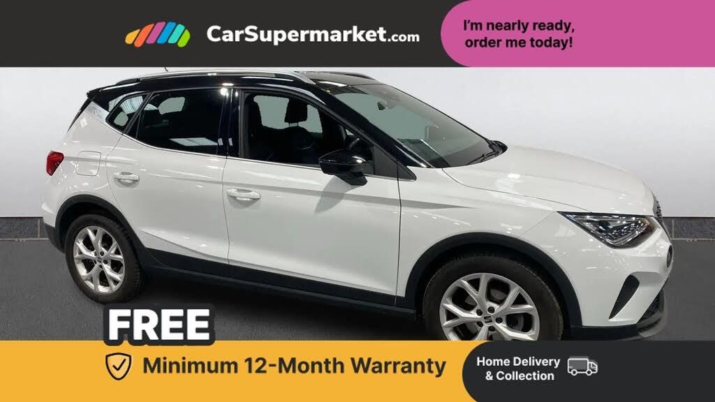 'Lights On' Reminder warning buzzer,8" Digital cockpit,Digital clock,E-call,Electric speed sensitive power steering,Full Link Smartphone Integration with Mirror Link, Apple Car Play, Google Android Auto with USB Type C cable for Apple and Android compatibility,Lane keeping system,Low fuel warning light,Outside temperature display,Rear parking sensor,RPM counter,Seat connect with safety, service, remote and online,SEAT Drive profile - Four different models normal-sport-eco-individual, steering response, throttle response,Trip computer,Wireless phone charger,9.2" colour touchscreen with navigation system, voice control and USB port (type c),Bluetooth interface for hands free and audio streaming,DAB digital radio and AM/FM radio,Steering wheel mounted audio controls,Anti theft roof antenna,Auto dimming interior rear view mirror,Automatic activation of hazard warning lights,Body coloured bumpers,Body coloured door handle inserts,Chrome roof rails and window surrounds,Dark tinted rear windows,Electric front/rear windows,Electrically adjustable, heated and folding door mirrors,Front fog lights with cornering function and rear fog light,FULL LED automatic headlights with dynamic headlight range control, coming and leaving home, LED daytime running lights,LED rear tail lights and licence plate lights,Protective side mouldings,Rain sensing wipers,Rear side wing doors,Rear spoiler,Rear window wash/wipe,Roof colour door mirrors,Third brake light,Twin exhaust pipe styling hidden exhaust pipe,Visible VIN plate,Windshield wiper with intermittent control and potentiometer,2 cupholders,3 seat bench in 2nd row,60/40 split folding rear seat,Aircare filter,Black interior roof,Cloth upholstery,Double boot floor,Driver sunvisor with covered mirror + card holder,Dual zone climate control,Front courtesy light with 2x front and 2x rear reading lights,Front sport seats,Gear shift indicator,Height adjustable front seats,Height/reach adjustable steering column,Illuminated boot,Instrument lighting with brightness control,Interior ambient lighting,Interior light in footwell, central console and door panel,ISOFIX points in outer rear seats with top tether anchorage points,Passenger sunvisor with vanity mirror,Perforated flat bottomed leather steering wheel/gear knob/handbrake with red stitching and FR logo,Single front passenger seat,Two front and three rear height adjustable headrests,Interior chrome pack - Arona,3 point seatbelts on all rear seats,ABS,Active front headrests,Child locks on rear doors,Driver and front passenger airbags with front passenger airbag de activation, front side and curtain airbags,Electronic stability control,Emergency Brake Assist (EBA) and front assist,Front and rear seatbelt reminder,Hill hold control,Multi-Collision braking,Tiredness recognition system,Traction control,Tyre pressure monitoring system,Alarm with back-up horn,Electronic engine immobiliser,Locking wheel bolts,Remote central locking + deadlocks,Tow away protection,Titan black dashboard,17" Dynamic alloy wheels