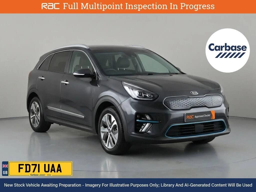;1 Owner From New With Service History - Last At 36k And RAC Multi-Point Inspection at 70k Miles The Kia E-Niro Has The Capability To Make Electric Driving More Comfortable Than Ever - This Kia Niro Is A Fully Electric Vehicle That Can Utilize Ultra Rapid Charge Technology At A Impressive Rate Of 100 Kw By Using A CCS Connector Which Enables You To Charge From 10% To 80% In As Little As 45 Minutes. All This Together Gives A Exceptional Range Of 282 Miles. The Niro Showcases A Strong 201 Horsepower And An Instant Torque Of 395 Newton-Meters From Its Electric Motor, Launching 0 To 60 Mph In Just 7.5 Seconds. - Finished In £595 Midnight Black Metallic Paint Standout Key Features Include Gps Satellite Navigation System, Boasting Intuitive Sat Nav Functionality For Seamless Journeys, Stunning Cinematic Vista Of The Skies Glass Panoramic Sunroof, Rear Assist Camera. As You Step Inside You'll Discover An Impressive Array Of Technology, Including Apple CarPlay, Android Auto, Wireless Charging Pad For Compatible SmartPhones, Rear Radar Type Parking Sensors, Rain Sensing Windscreen Wipers, Lane Departure Warning System, Radar Guided Adaptive Cruise Control. Keep Everyone Onboard Entertained Thanks To Features Such As Voice Control For Media Functions, Bluetooth Wireless SmartPhone Connectivity, DAB Digital Radio For A Myriad Of Stations To Suit Your Mood, CD Player With MP3 Compatibility. Relax In The Ultimate Comfort Thanks To Keyless Entry, Keyless Start, Air Conditioning, Electrica...