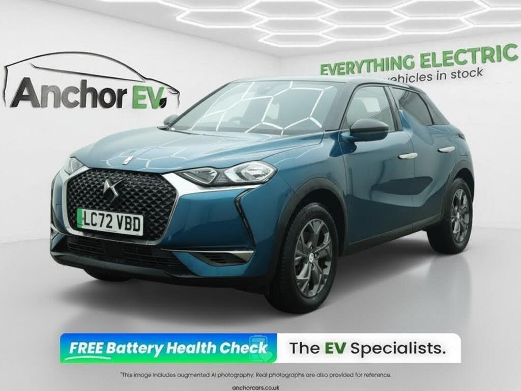 CLOTH interior.Anchor EV is proud to present this 2022 DS 3 E-TENSE 50kWh Bastille Crossback, a stylish and compact all-electric hatchback that blends distinctive French design with everyday practicality. Finished in Blue, this five-door model has a smart and modern presence, with its crossover-inspired styling giving it excellent road appeal and a premium feel. Powered by an electric motor with a 50kWh battery and paired with an automatic transmission, this DS 3 delivers a smooth, quiet and effortless driving experience. The all-electric powertrain offers responsive performance along with refined operation, making it an excellent choice for urban journeys as well as longer trips. Inside, the cabin offers a contemporary layout with a comfortable and well-considered design that suits daily driving with ease. The hatchback body style adds useful practicality, making this a great option for drivers seeking compact dimensions without sacrificing comfort or versatility. For more information or to arrange a viewing, please contact Anchor EV on 0118 443 3024 or visit www.anchorcars.co.uk/ev .