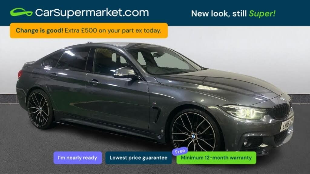 BMW Online services,BMW remote services,BMW Teleservices,Run flat indicator,Electronic differential lock,Auto dimming rear view mirror,Body colour door handles,Body colour roof mouldings,Follow me home headlights,Heated windscreen washer jets,LED daytime running lights,LED front fog lights,M aerodynamic bodystyling,Rain sensor including auto headlights activation,Welcome lighting,Windscreen with grey shadeband,12V sockets in front centre console and passenger footwell,3 spoke leather M sport multifunction sports steering wheel,4 grab handles,Anthracite headlining,Front head restraints,Toolkit located in luggage compartment,3 point seatbelts on all seats,Automatic Stability Control (ASC),BMW emergency call,Brake energy regeneration,Cornering brake control (CBC),Dynamic brake control,Dynamic Traction Control - DTC,Front seatbelt force limiters,Side impact protection,Warning triangle and first aid kit,Automatic tailgate opening,Brake pad wear indicator warning light,Check control system,Door/boot open warning,Front/rear Parking distance control,iDrive controller and display with 6.5" monitor,Lights on warning,Oil temperature gauge,On board computer,Outside temperature display,Real time traffic information,Service interval indicator,Stop/start button,Drive Performance Control,Sports function on gearbox with steering wheel mounted gearshift paddles,Bluetooth audio streaming,BMW professional radio/CD/MP3,DAB Digital radio,2 speed adjustable intermittent wipers with wash/wipe function,Body colour bumpers,Body colour door mirrors,Chrome kidney grille with black vertical slats,Door sill finishers,Dual chrome exhaust,Electric adjustable heated door mirrors,Electric front and rear windows with fingertip open/close + anti-trap all round,Headlight range control,Heat insulating tinted glass,High gloss shadow line,LED tail lights,Dual zone climate control,Folding front centre armrest with storage compartment,Folding storage compartment with glasses holder + coin tray,Front cupholders x 2,Front door storage with bottle holder,Front sports seats with electric side bolster adjustment,Front/rear armrests within door panels,Glovebox with lid,Heated front seats,Integrated rear head restraints,ISOFIX child seat preparation+airbag deactivation,Lashing eyelets in boot,Leather gearknob,Leather handbrake grip,Reach + rake adjustable steering column,Rear centre armrest with 2 cupholders,Extended lights package - 4 Series,ABS/EBD,Brake assist function,Crash Sensor - activates hazard/interior lighting + unlocks doors,Driver seatbelt warning indicator,Driver/Front Passenger airbags,DSC+,Front passenger airbag deactivation,Front seatbelt pretensioner,Front side airbags,Hill start assist,ITS head airbags for front/rear,Tyre pressure monitor,Central locking including fuel filler and boot,Drive away door locking,Electronic immobiliser,Remote control Thatcham category 1 alarm,Dakota Leather - Black with Black Interior,Mineral Grey,Interior Trim - Brushed Aluminium with Black High-Gloss Trim Finisher