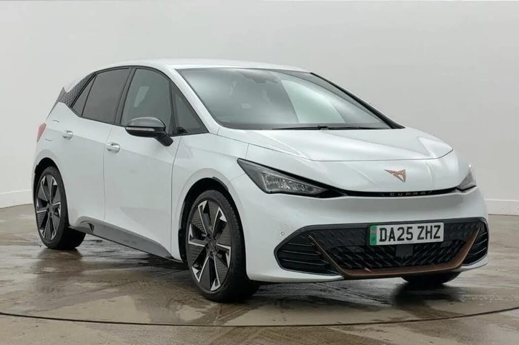 5.3" digital cockpit with 12.9" central display infotainment system,Augmented reality head up display,Bluetooth,Dynamic steering,e-call service,Emergency steering support with turn assist,Forward collision warning with automatic braking,Lane assist,Right hand drive vehicle,Tailgate,Voice assistant,Wireless full link smartphone integration,11 kW Onboard charger,165kW DC charging capacity,Charging cable mode 3, type 2/3 32 A,Gear ratio 12976,Shock absorption in front,Sports rear shock absorption,2x USB sockets in front,2x USB sockets in rear, charge only,DAB (Digital Audio Broadcasting) and AM/FM radio,Acoustic windshield,Auto dimming rear view mirror,Dark tinted rear windows,Electric adjustable/heated/folding door mirrors,Full LED headlights,Grey exterior mirrors,Heat insulated glass,LED 3rd brake light,LED daytime running lights,LED rear lights,Rear side wing doors,Rear wiper,Transport protection film,Variable intermittent wiper,Welcome home function and adverse weather function,Windshield wiper with light/rain sensor,3 seat bench in 2nd row,Aluminium pedals,CUPRA emblem on steering wheel,Dual zone climatronic air conditioning,Electric auxiliary air heater,Front bucket seats with 12 way electrically adjustable, pneumatically adjustable lumbar support and massage function,Heated front seats,Heated leather wrapped multi function steering wheel with satellite buttons,Integrated front head restraints,ISOFIX points in outer rear seats with top tether anchorage points,Rear headrests,Single front passenger seat,Sunvisors with illuminated mirror,Unsplit rear seat bench, split folding backrest, with centre armrest,Safety and NCAP pack - Born,3 point seatbelts on all rear seats,Attention and drowsiness assist,Driver and front passenger airbags with front passenger airbag deactivation, side airbag in front with curtain airbag and front interaction airbag,Extended safety system with proactive passenger protection system,Tyre pressure monitoring system,Visual and acoustic seat belt reminder,Anti theft alarm system with interior monitoring in cab, backup horn and towing protection,Anti theft wheel bolts,Keyless go central locking system,Manual child locks,Preparation for alcohol interlock,Warranty - 5 years/90,000 miles,Tool kit,Tyre repair kit