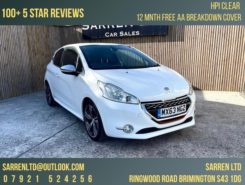 **CONTACT US ON 07921524256 or EMAIL US AT SARRENLTD@OUTLOOK.COM*** ABSOLUTELY STUNNING example of the Peugeot 208 1.6 THP GTi Euro 5 3dr, finished in metallic white with eye catching black and red part leather interior. The performance of this GTi is truly a standout, boasting an impressive 0-62mph acceleration time of just 6.8 seconds. MOT due 07/04/2027 with no advisories. All new brake discs and pads. All new tyres and freshly refurbished alloys. Full service history (7 stamps) and freshly serviced at 44902 miles. Pump, belt and tensioner replaced 2025. Additionally this vehicle comes with 2 keys. Superb specification including;*7in Multifunction Colour Touchscreen*Satellite Navigation*Seats - Sports Front and Rear*17in Alloy Wheels *Rear Lights - LED*Rear Parking Aid*Steering Wheel Mounted Controls*Cruise Control*Bluetooth Connectivity - Audio*DAB Digital Radio*ABS - Anti Lock Braking System*Headlights - Automatic*LED Daytime Running Lights*ISOFIX Location Points*USB Input and many many more!Absolutely gorgeous condition throughout. Extended warranty available. Here at Sarren we do not charge an admin fee for our services.We are a family run dealership, please see our website for more vehicles. To ensure availability of stock we recommend making an appointment to avoid any disappointment. We are highly rated by Autotrader and an approved AA car dealer. All of our vehicles come with 12 months AA BREAKDOWN COVER. Additionally part exchange, warranty and delivery are available . Fully retail and HPI checked for your peace of mind. We are a family run business, with 20+ years in the motor trade industry and pride ourselves on our award winning aftercare service, warm welcome and pressure free environment. We are based at Sarren Ltd Ring Wood Road, Brimington, Chesterfield S43 1DG in the heart of England between junction 29a and 30 of the M1 in Derbyshire. Viewing welcome. We are open Monday through Saturday and unsociable hours at your convenience.-FSH/7inSCREEN/NAV/R-PARK AID-APPOINTMENTS AT YOUR CONVENIENCE