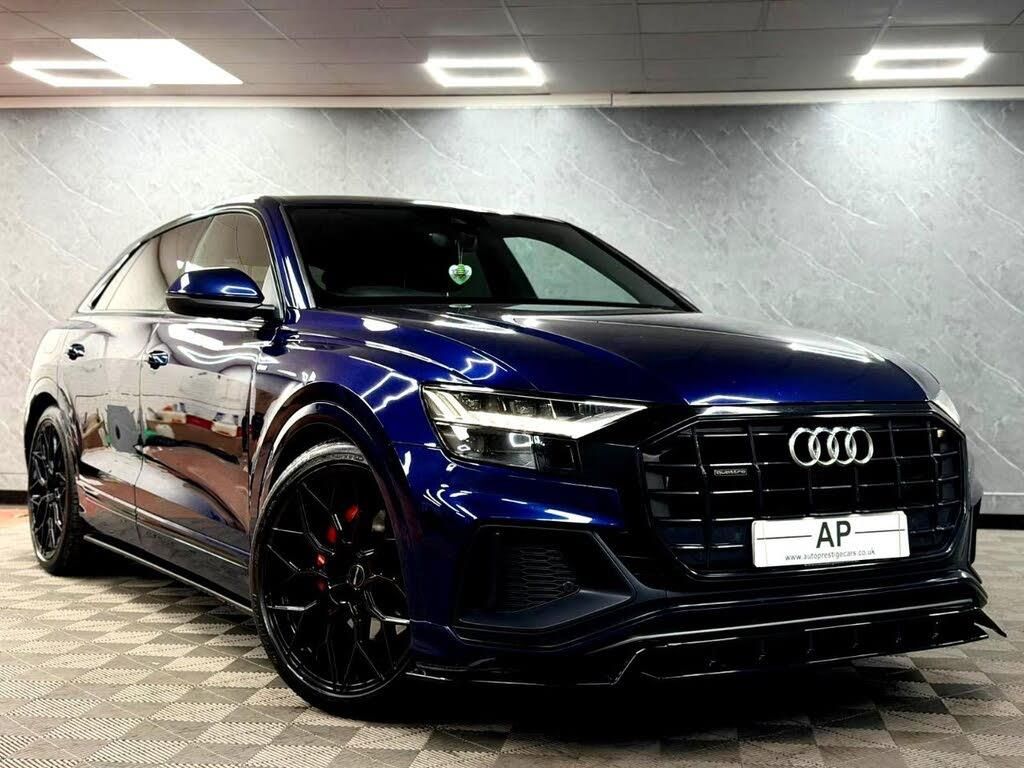 HEATED BLACK LEATHER interior.AUTOPRESTIGE - HOME OF THE FINEST SELECTION OF BESPOKE, INDIVIDUAL PERFORMANCE AND PRESTIGE VEHICLES..BUY WITH COMPLETE CONFIDENCEWE ARE PLEASED TO PRESENT ANOTHER STUNNING 2019 AUD Q8 50 S-LINE FINISHED IN AUDI EXCLUSIVE, METALLIC NAVARRA BLUE OVER 3 STAGE HEATED ELECTRIC MEMORY FULL BLACK S-EMBOSSED NAPPA LEATHER SPORTS SEATSONLY 2 PREVIOUS OWNERS - LAST KEEPER OF 4 YEARS - BACKED BY A FULL SERVICE HISTORY - COMMON ALTERNATOR REPLACED AT THE COST OF £2200 WITH INVOICE - RECENT TYRESTHIS HAS GOT TO BE THE BEST LOOKING AUDI Q8 AVAILABLE EQUIPPED WITH A FULL MAXTON DESIGN AERO KIT CONSISTING OF GLOSS BLACK FRONT SPLITTER,GLOSS BLACK SIDE SKIRT EXTENSIONS,GLOSS BLACK TOP ROOF SPOILER AND GLOSS BLACK MIDDLE BOOT SPOILER AS WELL 22"AVS FORGED VOSSEN STYLE ALLOYS FINISHED IN GLOSS BLACK CONTRASTED OVER CANDY RED CALIPERSHUGE FACTORY SPECIFICATION WHICH INCLUDES FULL EXTERIOR BLACK OPTICS PACK,AUDI MATRIX LED HEADLIGHTS WITH HIGH BEAM ASSIST,PRIVACY GLASS,ADJUSTABLE AIR SUSPENSION,3 STAGE HEATED ELECTRIC MEMORY FULL EXTENDED NAPPA LEATHER SEATS,AUDI VIRTUAL COCKPIT PLUS WITH LARGER TOUCH INFOTAINMENT SCREEN,SELECTIVE DRIVE MODES WITH ADAPTIVE SUSPENSION,REAR VIEW CAMERA,HEATED MULTIFUNCTION STEERING WHEEL,BLUETOOTH AUDIO,APPLE CARPLAY,SAT-NAV,VIRTUAL DISPLAY,SPLIT FOLDING REAR SEATS,ISOFIX SEATS,POWER OPERATED TAILGATE,HEATED ELECTRIC AUTO DIMM POWER FOLD MIRRORS PLUS THE USUAL S-LINE 50 REFINEMENTS...SUPPLIED WITH 2 KEYS AND ALL SUPPORTING PAPERWORK.