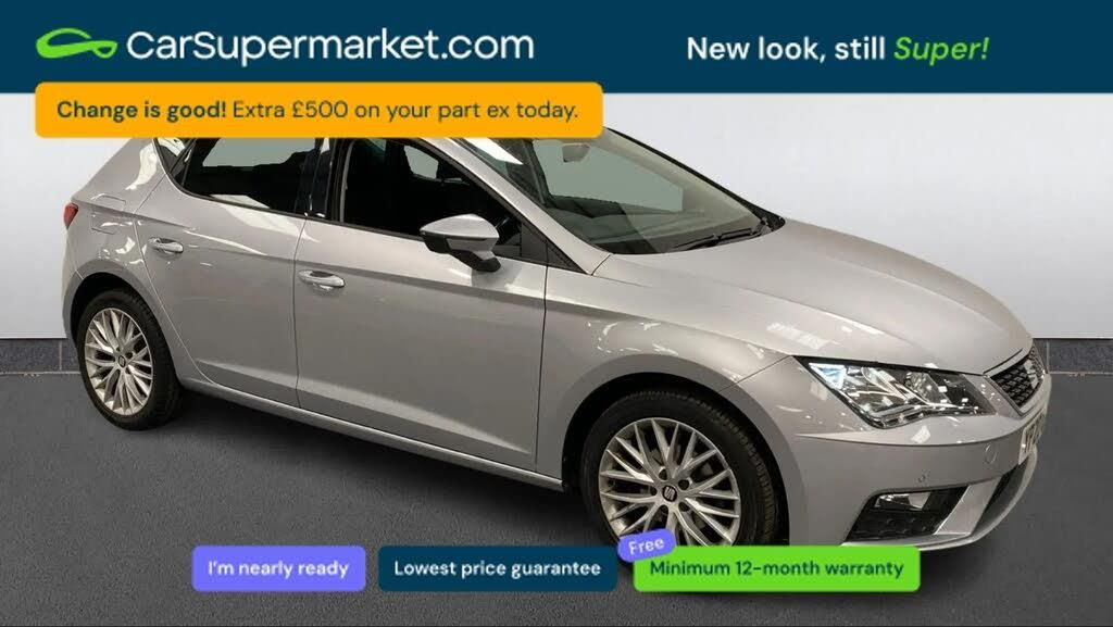 Electro-mechanical power steering,Front and rear parking sensors,Front assist with pedestrian protection,Full Link Smartphone Integration with Mirror Link, Apple Car Play, Google Android Auto with USB Type C cable for Apple and Android compatibility,Media system plus with 8" display, 4 USB, 8 speakers, CD, voice control, DAB, bluetooth and handsfree, steering wheel mounted audio and phone control,Navigation system 3D map display, high resolution colour driver display, two SD card slots,RPM, trip computer, outside temp gauge, instrument light brightness, low fuel warning light, lights on reminder, gearshift indicator,SEAT logo boot release,Service interval indicator,Comfort suspension,XDS electronic differential lock,Auxiliary input socket,SEAT USB media cable,Black front grille,Body colour door handles,Body coloured bumpers,Body coloured exterior mirrors with integrated LED indicators,Dark tinted rear windows,Electric front/rear windows,Electrically adjustable and heated door mirrors,Front fog lights with cornering function and rear fog light,Front grille frame in chrome,Halogen headlights with small LED daytime running lights,Hidden exhaust pipe,High gloss black finish B and C pillars,Rear wash/wipe,12v power point in centre console,Additional heating and ventilation outlet in rear of centre console,Air conditioning,Boot storage net,Cargo rings in boot,Driver and passenger seat height adjust,Driver and passenger sun visor, covered and illuminated mirror, driver sun visor with card holder,Driver seat lumbar adjustment,Dust/pollen filter,Folding rear seats,Front and rear head restraints,Front centre armrest with storage compartment,Front comfort seats in Tresil cloth,Front cupholders x 2,Front seatback storage pockets,Height adjustable front and rear headrests and third rear headrest,Height/reach adjust steering wheel,High centre console with integrated box & cup holder, rear air outlet, with armrest in front seats,Illuminated glovebox,ISOFIX points in outer rear seats with top tether anchorage points,Leather steering wheel and gear knob,Luggage tie-down hooks,Storage box under drivers seat,3 point seatbelts on all rear seats,ABS, traction control system, electronic stability control,Child proof door locks,Driver and front passenger airbags with front passenger airbag de-activation, front side, curtain, driver knee airbags,EBA,Electric handbrake,Electronic parking brake with auto hold,Front seatbelt pretensioners,Front seatbelt reminder,Hill hold control,Multi-Collision braking,Tyre pressure monitoring system,Central locking fuel filler cap,Engine immobiliser,Locking wheel bolts,Remote central locking + deadlocks,Volumetric alarm with back up horn,Chrome interior detailing,17" Dynamic alloy wheels 30/3