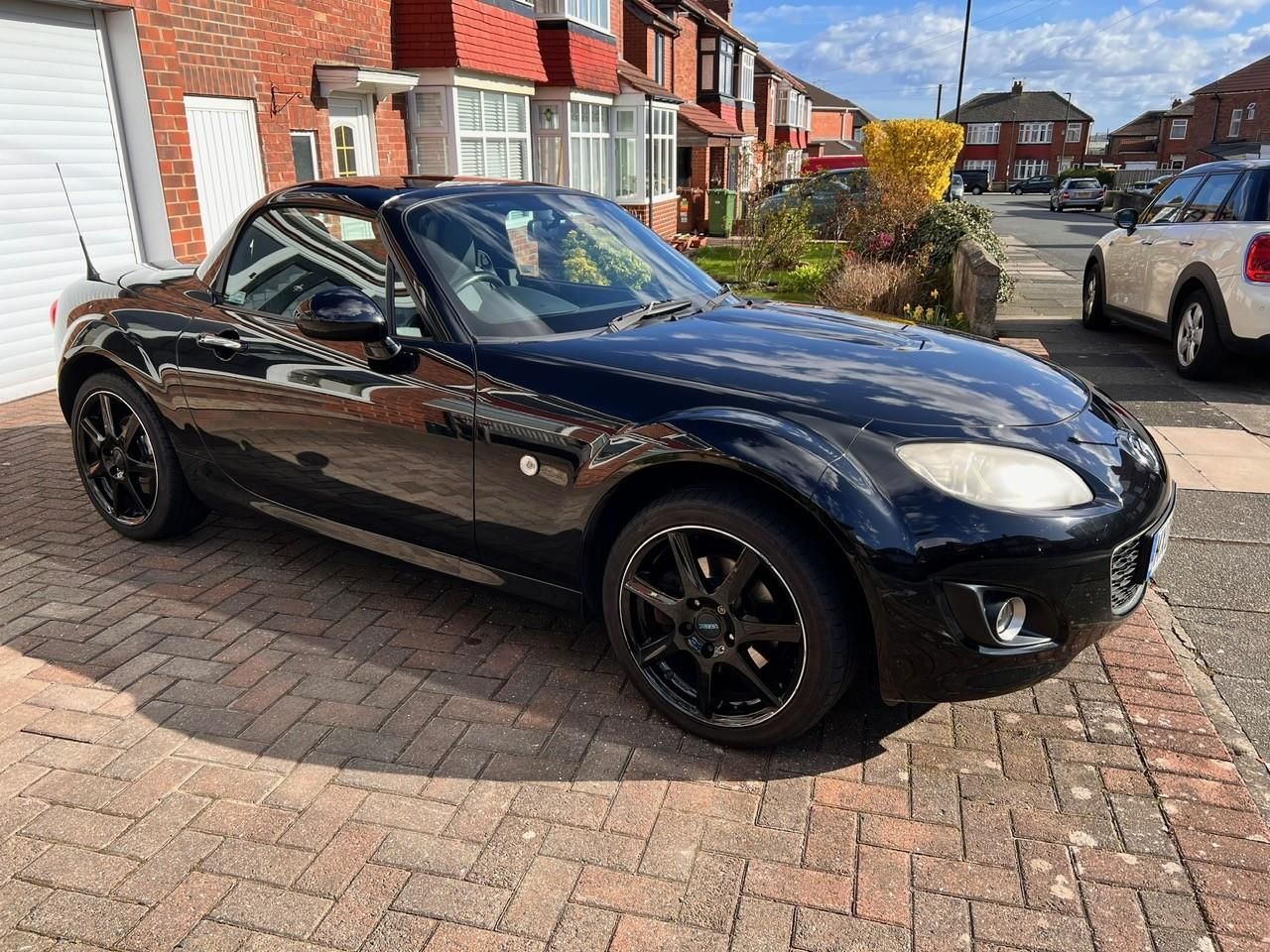For sale: much loved 2010 Mazda MX-5. Originally on a 60 plate, it is being sold with the private plate MX05 BRA. This car is great fun to drive and brings much joy when out in the sun with the roof down. This is the 2.0 Sport Tech with power retractable hard top (PRHT) and comes with 17inch black alloys, two keys, air conditioning, wind deflector, cruise control, electric windows and side mirrors, leather heated seats, auxiliary jack for connecting phones/MP3 players and a Bose stereo system with Bluetooth and a six CD player.