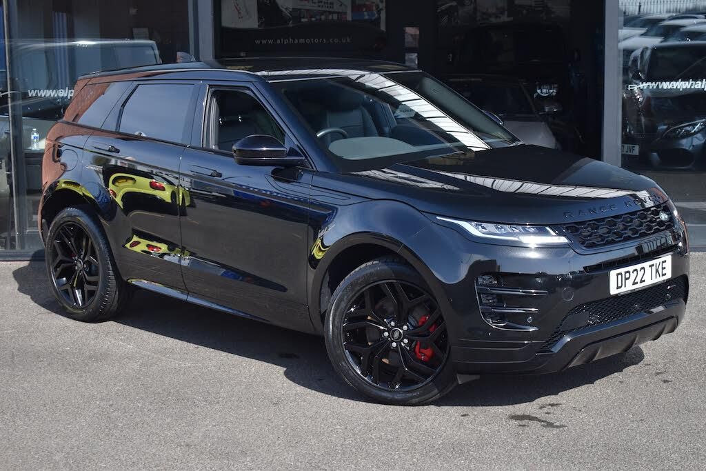 10in Deployable Touchscreen,12-Way Driver and 10-Way Passenger Heated Electric Front Seats with 2-Way Manual Headrests and Rear Centre Armrest,20in Alloy Wheels - Style 5079 - Gloss Black,40-20-40 Folding Rear Seats,ABS - Anti Lock Braking System,ACC - Adaptive Cruise Control,ATPC - All Terrain Progress Control,All Season Tyres,Ambient Interior Lighting,Analogue Dials with Central TFT Display,Android Auto,Apple CarPlay,Approach Lights,Auto-Dimming Interior Rear View Mirror,Automatic Headlights,Black Exterior Pack,Bluetooth Connectivity,Body Coloured Roof,Brake Pad Wear Indicator,Bright Metal Pedals,Cabin Lighting,Carpet Mats,Chrome Treadplates,Customer Configurable Autolock,DAB - Digital Audio Broadcast,DSC - Dynamic Stability Control,Driver Condition Monitor,EBA - Emergency Brake Assist,EBD - Electronic Brake-Force Distribution,EPAS - Electronic Power Assisted Steering,ETC - Electronic Traction Control,Efficient Driveline,Electric Parking Brake,Electric Windows with One-Touch Open-Close and Anti-Trap,Emergency Braking,Evoque Badge,Fixed Panoramic Roof Including Powered Blind,Flush Deployable Door Handles,Front and Rear Parking Aid,HDC - Hill Descent Control,Headlining - Ebony Morzine,Heated Electric Power Fold Door Mirrors with Approach Lights and Auto-dimming Driver Side,Heated Rear Window with Timer,Hill Launch Assist,Intrusion Sensor,LED Headlights,Lane Keep Assist,Leather Steering Wheel,Locking Wheel Nuts,Low Traction Launch,Manual Headlight Levelling,Manually Adjustable Steering Column,Meridian Sound System,Online Pack with Data Plan,Overhead Lighting Console,Overhead Stowage for Sunglasses,Passive Front Headrests,Passive Suspension,Pivi Pro - Connected,Power Operated Child Locks,Power Socket Pack 1,Powered Tailgate,Privacy Glass,Push Button Start,R-Dynamic Exterior Pack,RSC - Roll Stability Control,Rain Sensing Windscreen Wipers,Rear Air Vents,Rear Animated Directional Indicators,Rear Centre Headrest,Rear Collision Monitor,Rear Fog Lights,Rear ISOFIX,Rear View Camera,Remote,Satin Chrome Gearshift Paddles,Seat Belt Reminder,Secure Tracker (12 Month Subscription From New),Six Airbags,Steering Wheel - Heated,Sun Visors - Illuminated Vanity Mirrors,TPMS - Tyre Pressure Monitoring System,TVBB - Torque Vectoring by Braking,Tailgate Spoiler,Terrain Response 2,Traffic Sign Recognition and Adaptive Speed Limiter,Trim Finish - Gradated Linear Dark Aluminium,Twin Sliding Front Centre Armrest,Two-Zone Climate Control,Windscreen - Heated,Windscreen Washer Jets - Heated,Wireless Device Charging,Red Painted Brake Calipers,Reduced Section Spare Wheel,Grained Leather - Ebony with Ebony-Ebony Interior,Santorini Black