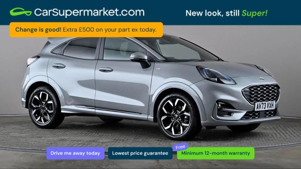 Lane Departure Warning, Traffic Sign Recognition, Privacy Glass, Quickclear Heated Windscreen, Wireless Phone Charging, Sat Nav;Ford Puma 1.0 EcoBoost Hybrid mHEV ST-Line X (Silver) A stylish mild-hybrid SUV combining efficiency with sporty design. Includes satellite navigation, wireless phone charging and a Quickclear heated windscreen. Features lane departure warning, traffic sign recognition and privacy glass for added comfort and safety. Finished with premium interior detailing. Supplied with a 159-point inspection and a minimum 12-month warranty. MOT due 10/11/2026.