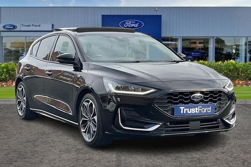 12.3 Digital instrument cluster, Bluetooth system, Digital clock, Easy fuel capless refuelling system, Eco mode, Ford SYNC4 Nav with 13.2'' touchscreen, DAB, Emergency Assistance, Apple Carplay & Android Auto, B&O Premium Audio with 10 speakers, FordPass Connect, Lane keeping system - lane keeping alert and lane keeping aid, PAS, Rev counter, Selectable drive mode, Service interval indicator, Trip computer, Wireless charging pad, Auto headlamps (on/off), Body coloured door handles, Electrically operated front and rear windows with one touch opening and closing, Electrically operated heated power fold door mirrors with puddle lamp with side indicators, Front variable intermittent wipers with electric wash, Heated rear window, LED daytime running lamp, LED rear lamps, LED third brake light, Polished twin tailpipe, Privacy glass, Quickclear heated windscreen, Rain sensor, Rear side wing doors, Tailgate wash/wipe, Unique ST-Line grille, full bodystyling kit, and large body coloured rear spoiler, 3 rear headrests, 3 seat bench in 2nd row, Dual zone electronic air temperature control, Full sensico premium upholstery, Height adjustable front headrests, Isofix child seat preparation, Load through ski hatch, Manual 4-way passenger seat adjusts, Power 4-way driver seat adjust, with power lumbar adjust, Reach + rake adjustable steering column, Single front passenger seat, 3x3 point rear seatbelts, ABS+Electronic Brake force Distribution, Auto hold function, Driver airbag, EDL traction control, Electronic parking brake, Electronic stability control, Front and rear seatbelt reminder, Front inertia reel height adjustable seatbelts with pre-tensioners, Front passenger airbag, Front side airbags, Passenger airbag deactivate switch, Post collision braking, Pre collision assist with autonomous emergency braking and pedestrian/cyclist detection, Red brake calipers, Remote/power child rear door locks, Side curtain airbags, Three rear inertia reel lap/diagonal seatbelts, Tyre pressure monitoring system