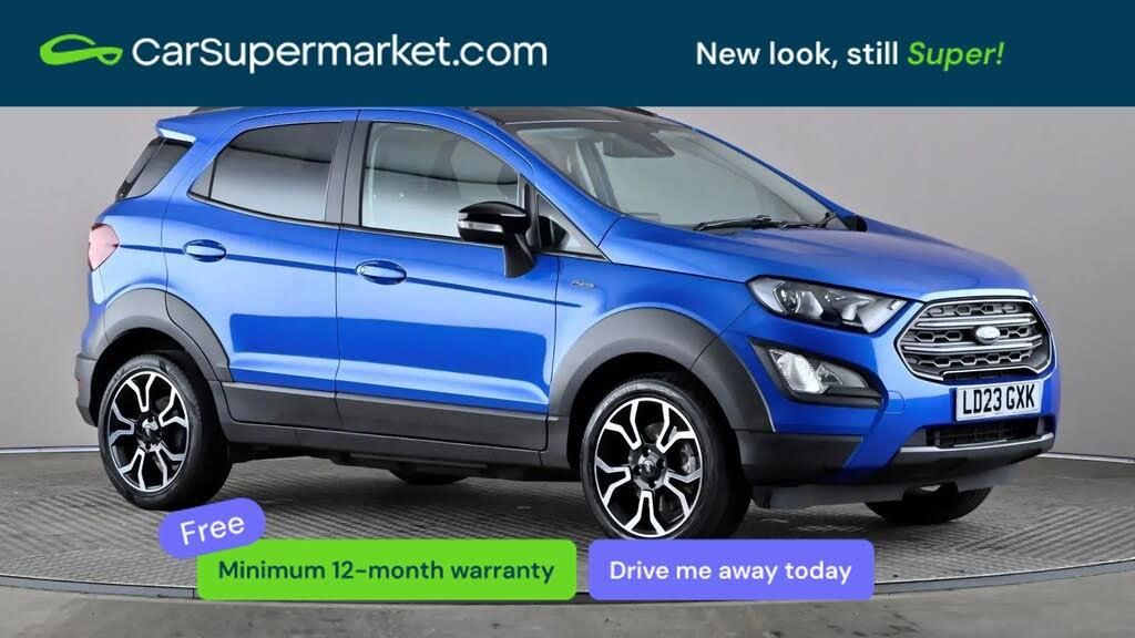 Sat Nav, Android Auto, Apple CarPlay, Parking Sensors, Traffic Sign Recognition, Privacy Glass;Ford Ecosport 1.0 EcoBoost 125 Active (Blue) A practical compact SUV offering efficiency and modern technology. Includes cruise control, satellite navigation, Android Auto, Apple CarPlay, parking sensors, traffic sign recognition and privacy glass. Added extras include Desert Island Blue paint (£250). Supplied with a 159-point inspection and a minimum 12-month warranty. Last service 10/04/2026. MOT due 01/03/2027.