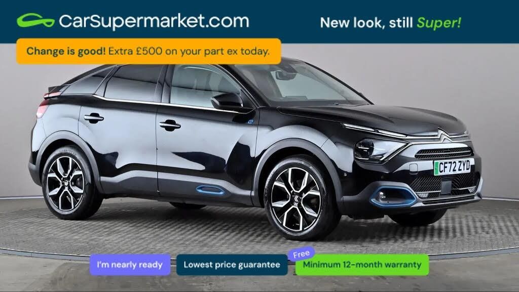 Blind Spot Monitoring, Android Auto, Apple CarPlay, Sat Nav, Head-Up Display, Parking Sensors, Bluetooth, Digital Radio, Heated Front Seats, Heated Steering Wheel, Keyless Entry;Finished in black, this fully electric Citroen e-C4 Shine Plus offers smooth electric driving with a strong specification. Highlights include blind spot monitoring, Android Auto, Apple CarPlay, satellite navigation, head-up display, parking sensors, Bluetooth connectivity, digital radio, heated front seats, heated steering wheel and keyless entry.
