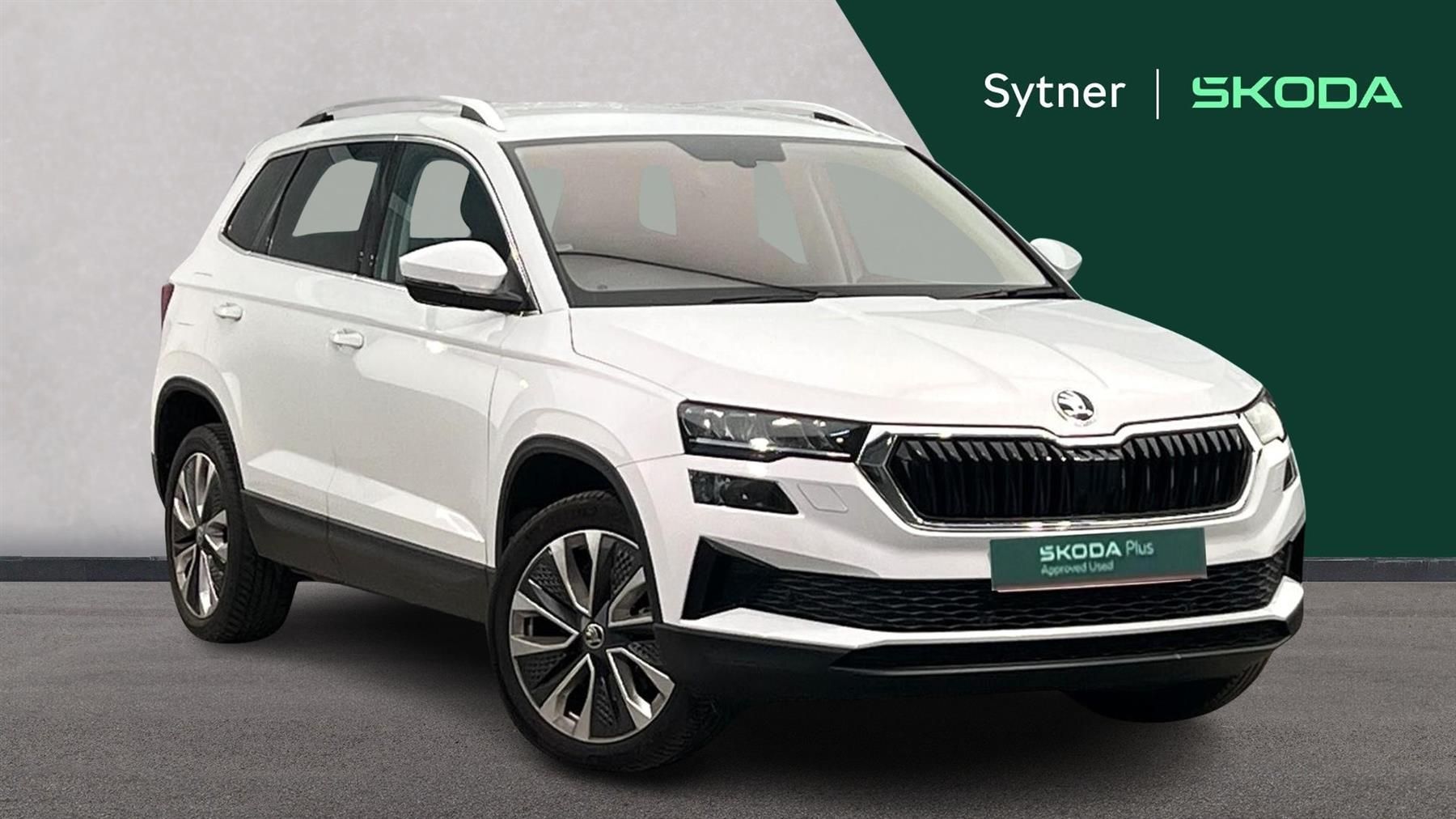 Reserve Online,Winter Package Plus,Headlight washers,Heated front and rear seats,Heated windscreen washer nozzles,Heat insulating windshield,Leather upholstery,18" Procyon silver alloy wheels,8" Digital display,SmartLink wireless for Apple and wired for Android,Driver fatigue sensor,DAB radio with Bluetooth,Auto dimming rear view mirror with light and rain sensors,LED rear lights with high functionality welcome effect and dynamic indicators,Dynamic headlight range control with cornering light function,Electric front and rear windows with child proof lock,Chrome roof rails + chrome pack - Karoq,Parking pack - Karoq,18" Procyon silver alloy wheels with anthracite aero inserts,Decorative door sills with KAROQ badging,Light assistant (coming/leaving home/tunnel light),Privacy glass,Heated rear windscreen