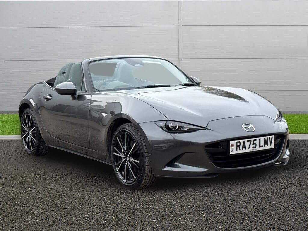 Driver Convenience,Blind Spot Monitoring with Rear Cross Traffic Alert,Cruise Control with Manual Speed Adjustment,Driver Attention Alert - DAA,Multimedia Commander,Rear Parking Sensors,Reversing Camera,Traffic Sign Recognition,Tyre Pressure Monitoring SystemEntertainment,8.8in TFT Colour Centre Display,AM-FM-DAB Radio,Integrated Bluetooth System,Mazda Navigation System - European Mapping with Alternative Route Calculations - Point of Interest Search and 7-Years Free Map Updates,USB Type-C Input x2,Wireless Apple CarPlay and Wired Android AutoExterior,17in Alloy Wheels - Machined Black Metallic,Black Premium Cloth Soft-top,Body Coloured Door Mirrors,Electric Windows - One Touch Auto Down,Emergency Tyre Repair Kit,Piano Black Fashion Bars,Scuff Plates - Black Plastic with Stainless Insert,Tailpipes - Twin,WindblockerInterior,3-Stage Seat Heaters,Air Conditioning - Climate Control,Air Vent Surrounds - Chrome,Centre Console - Trimmed in Vinyl Leather,Coinbox Located on Centre Console,Dashboard Panel - Black Vinyl Leather,Engine Start-Stop Button,Frameless Auto Dimming Rear View Mirror,Gear Shift - Leather-Wrapped,Interior Courtesy Light,Interior Upper Door Trim - Body Coloured Co-Ordinated,Kinematic Posture Control,Leather-Wrapped Handbrake Lever,Rain-Sensing Front Wipers with Adjustable Sensitivity and Speed,Seats - Drivers Manual Slide-Recline and Tilt Adjustment,Seats - Front Passenger Manual Slide and Recline Adjustment,Side Door Trim - Black Vinyl with Silver Stitching,Steering Wheel - Leather,Steering Wheel - Mounted Audio and Bluetooth Controls,Steering Wheel - Tilt and Telescopic Adjustment,Storage - Rear Centre Box with Lockable Lid,Sun Visors - Drivers and Front Passengers with Covered Vanity Mirror and Ticket Holder,Two Cupholders - DetachableEntertainment,8.8in TFT Colour Centre Display,AM-FM-DAB Radio,Integrated Bluetooth System,Mazda Navigation System - European Mapping with Alternative Route Calculations - Point of Interest Search and 7-Years Free Map Updates,USB Type-C Input x2,Wireless Apple CarPlay and Wired Android Auto