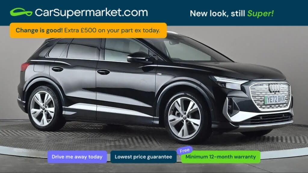 Apple CarPlay/Android Auto, Audi Virtual Cockpit, Bluetooth, Traffic Sign Recognition, Lane Departure Warning, Sat Nav, Digital Radio, Privacy Glass, Heated Front Seats;Audi Q4 150kW 40 82kWh S Line Auto (Black) A premium all-electric SUV combining strong performance with advanced technology and refined comfort. Includes Apple CarPlay/Android Auto, Audi Virtual Cockpit, Bluetooth, traffic sign recognition, lane departure warning, sat nav, digital radio, privacy glass, and heated front seats. 159-point inspection completed. Minimum 12-month warranty. MOT due 01/11/2026.