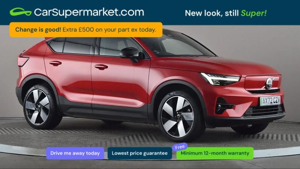 Parking Sensors, Bluetooth, Adaptive Cruise Control, Cruise Control, Blind Spot Monitoring, Sat Nav, Digital Radio, Fixed Panoramic Glass Sunroof;Volvo C40 300kW Recharge Twin Ultimate 78kWh AWD Auto (Red) A premium all-electric SUV coupe offering powerful performance and advanced safety features. Includes satellite navigation, Bluetooth connectivity, digital radio and adaptive cruise control. Also features blind spot monitoring, parking sensors and a fixed panoramic glass sunroof for an enhanced driving experience. Supplied with a 159-point inspection and a minimum 12-month warranty. Last serviced on 16/12/2025. MOT due 25/01/2027.