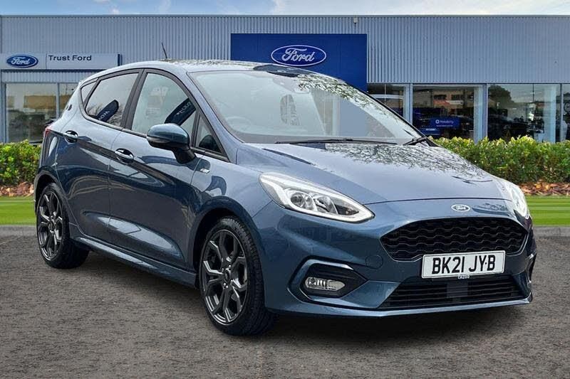 Bluetooth system, Electric power steering, Ford easy fuel, Ford SYNC 3 Navigation system incl 8 touchscreen, 7 speakers, FordPass connect, Apple carplay, android auto, voice control and emergency assistance, Rear parking distance sensors, Selectable drive modes (Normal, Sport, Track), Trip computer, Body colour bumpers, Body colour door handles, Body colour large rear spoiler, Body coloured electrically operated and heated door mirrors with side indicators, Cornering front fog lights, Electric front windows/one touch facility, Electric rear windows, LED Night signature to rear lights, Quickclear heated windscreen, Rain sensing wipers and auto dimming rear view mirror, Rear privacy glass, Rear wiper, Unique ST-Line upper grille & full bodystyling kit with ST-Line wing badges, 3 spoke flat bottomed leather steering wheel, 60/40 split folding rear seat, Adjustable head restraints, Black headlining, Boot carpet, Centre console with opening armrest, 2x cupholders, 12v and USB, Chrome inner door handles, Cloth upholstery, Footwell illumination, Front floor mats in velour, Front map reading lights, Front seat and rear pockets, Illuminated glovebox, Leather gaiter, Load area light, Manual 2 way passenger seat adjust, Manual 4-way driver seat adjust, Manual air conditioning, Overhead console with sunglasses holder, Pollen filter, Rake/reach adjustable steering wheel, Sensico wrapped steering wheel, Sports front seats, 3 point seatbelts on all rear seats, ABS+EBA, Curtain airbags, Driver and passenger airbags, Drivers knee airbag, Electronic stability control with hill start assist, Front passenger airbag deactivation, Front side airbags, Seatbelt warning, Two tone horn, Tyre pressure monitoring system